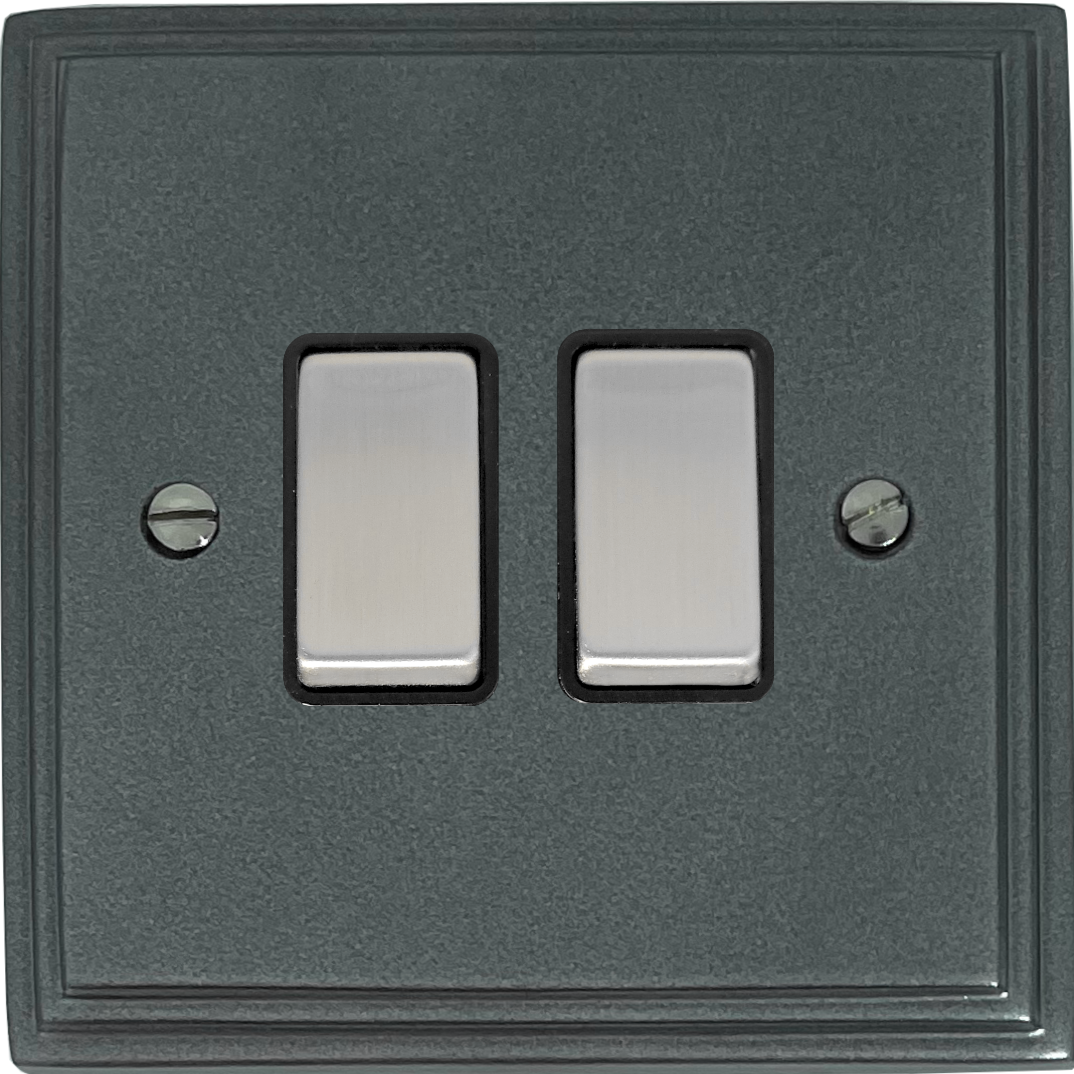 Pewter Light Switch (2 Gang/Black Insert/Satin Chrome Switch) - G+H VP302