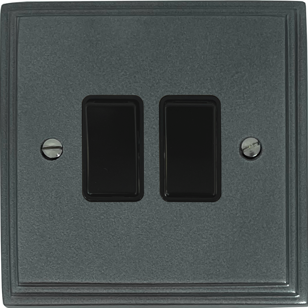 Pewter Light Switch (2 Gang/Black Switch) - G+H VP2B