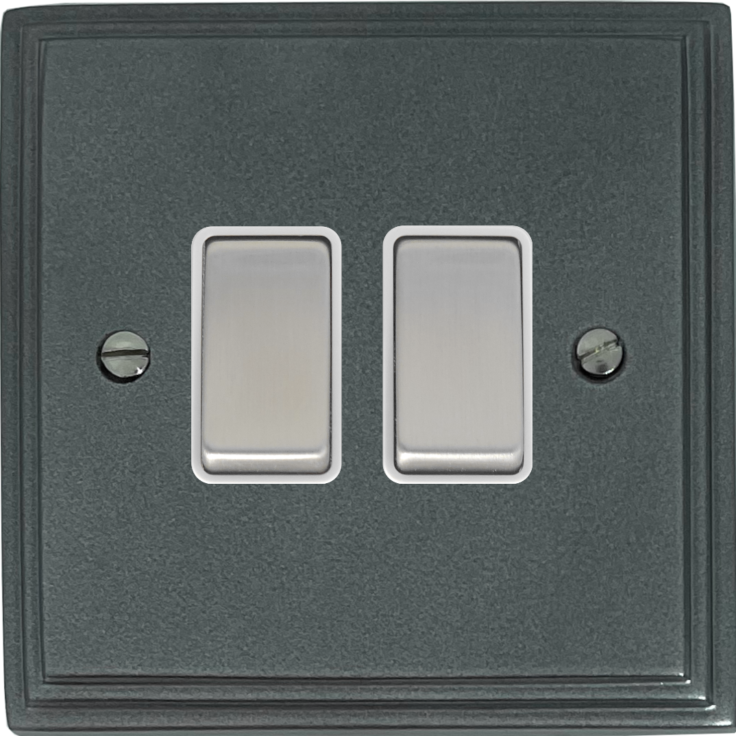 Pewter Light Switch (2 Gang/White Insert/Satin Chrome Switch) - G+H VP202