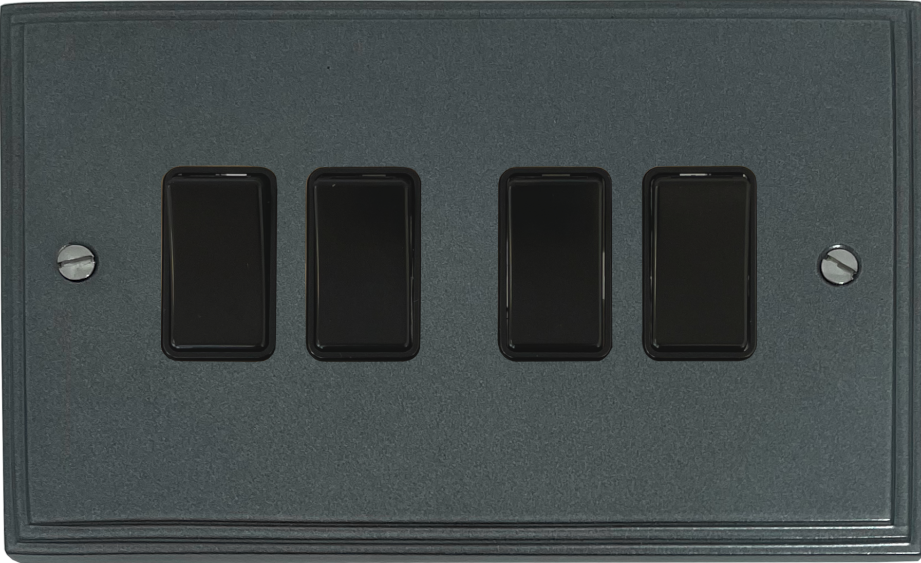 Pewter Light Switch (4 Gang/Black Insert/Black Switch) - G+H VP4B