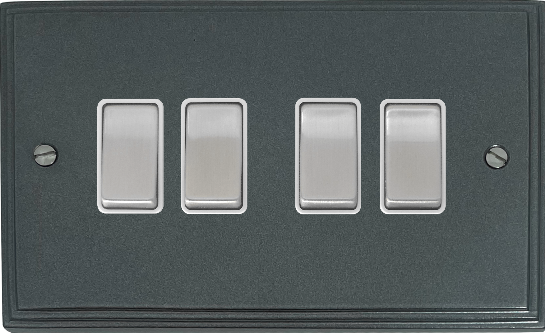 Pewter Light Switch (4 Gang/White Insert/Satin Chrome Switch) - G+H VP204
