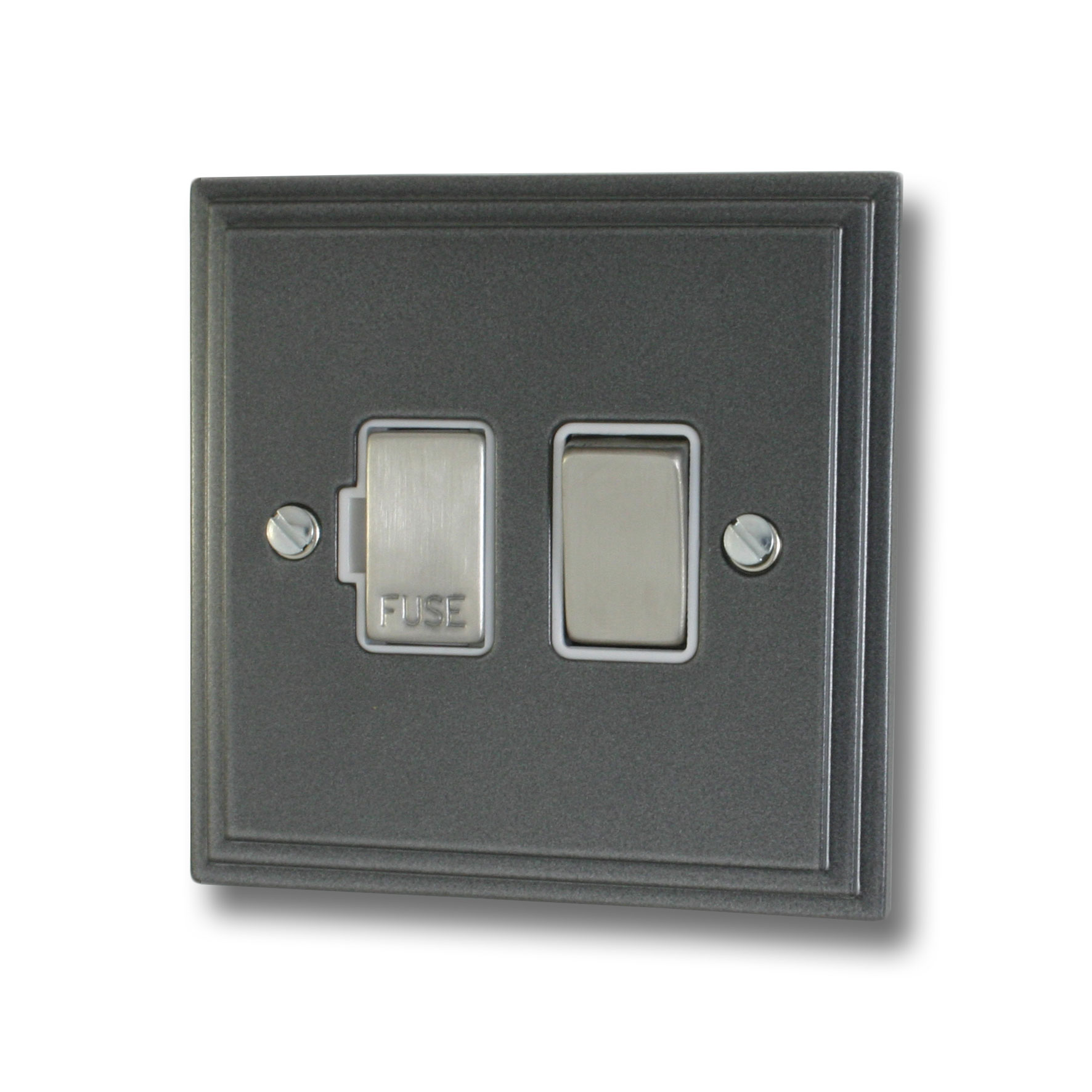 Pewter Switched Fused Spur (White Insert/Satin Chrome Switch) - G+H VP257