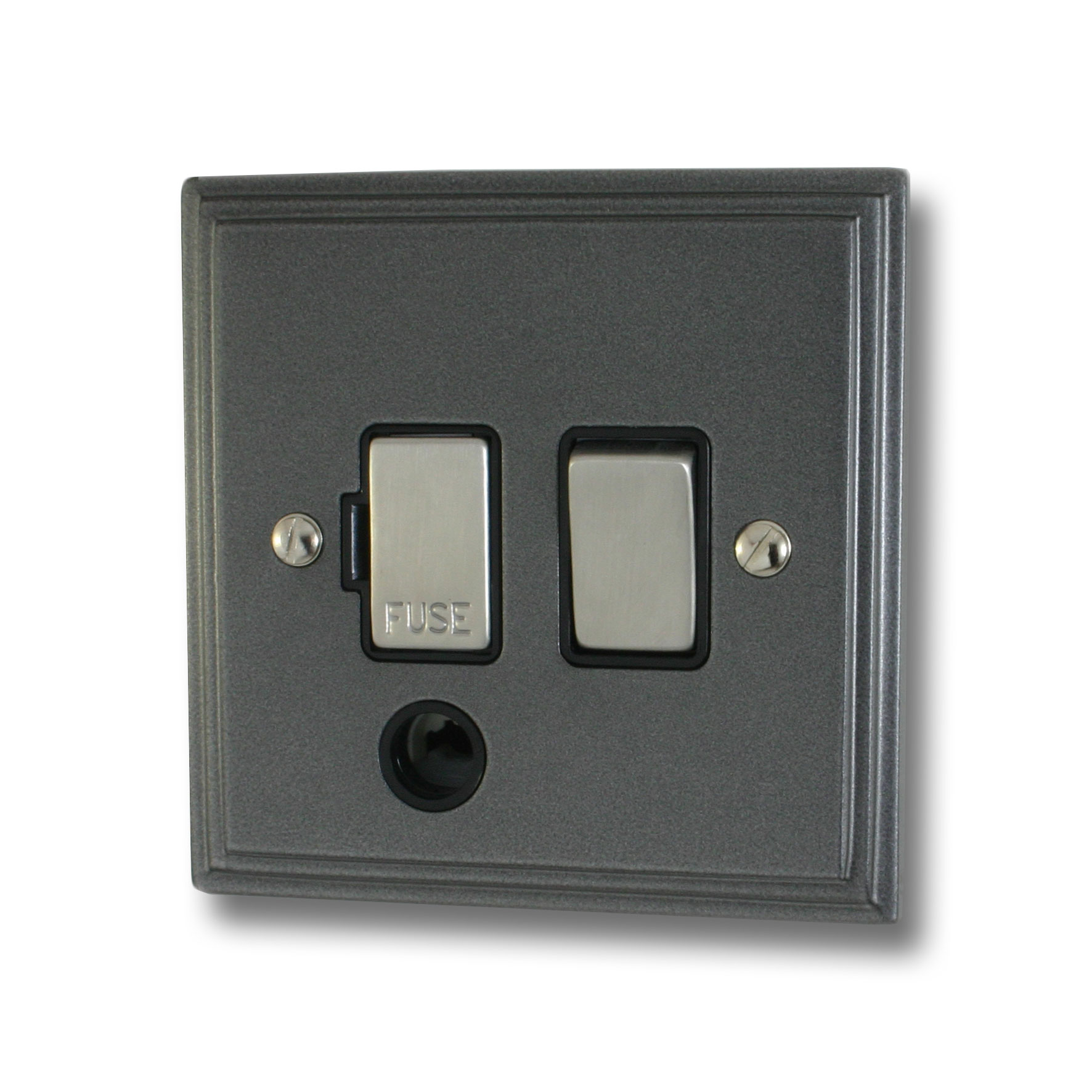 Pewter Switched Fused Spur with Flex Outlet (Black Insert/Satin Chrome Switch) - G+H VP356