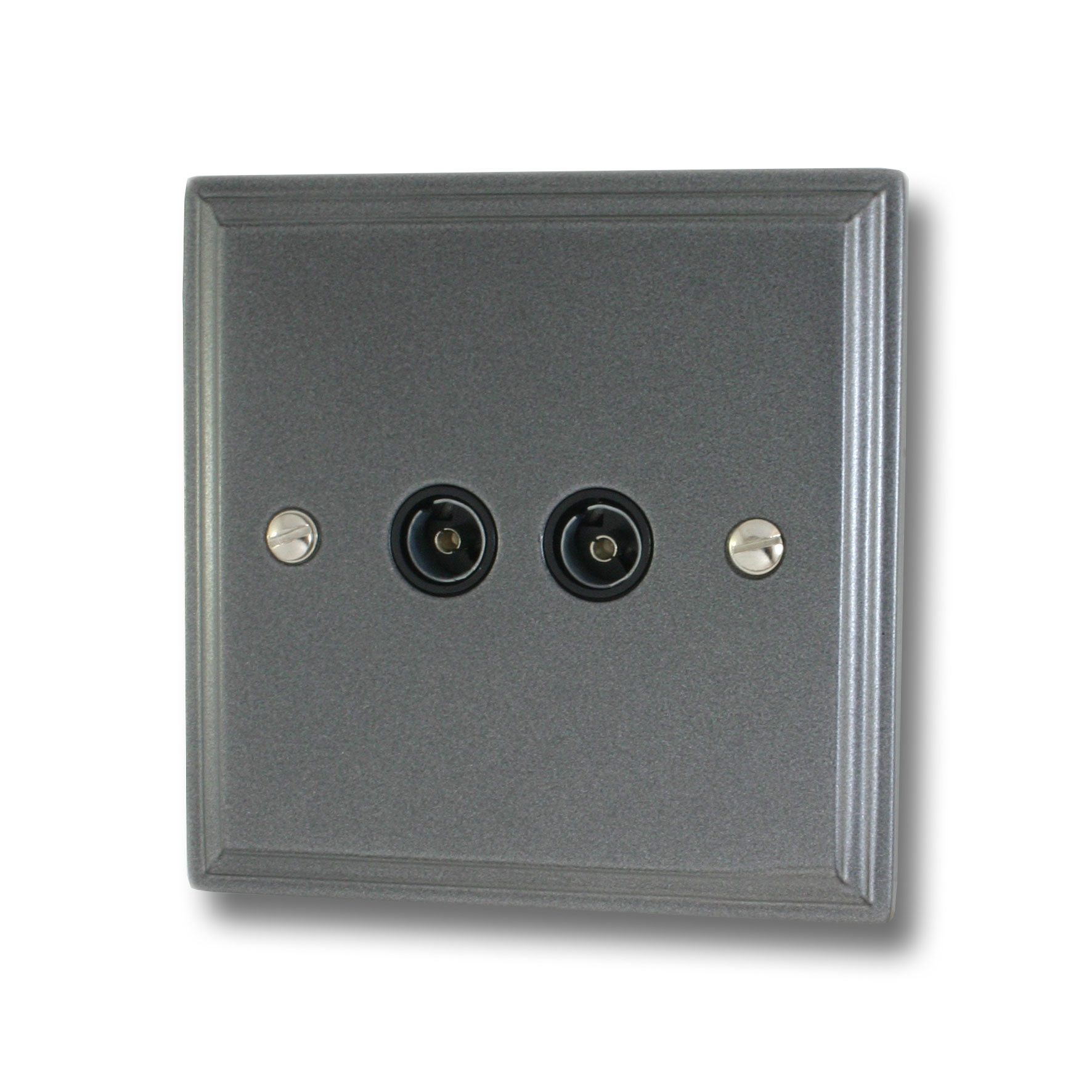 Pewter TV Socket (2 Gang/Black Insert) - G+H VP36B