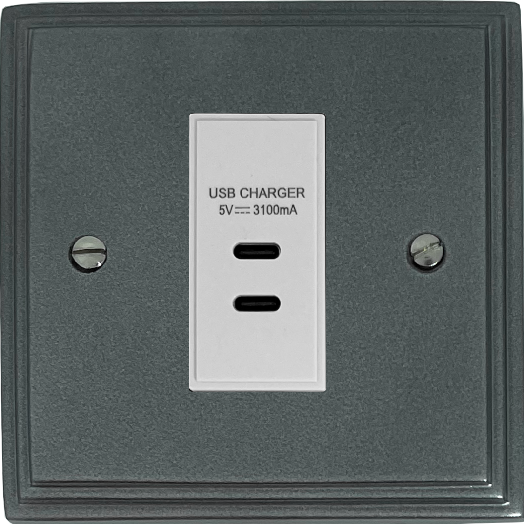Pewter USB Charger (2x USB-C) (1 Gang/White Insert) - G+H VP42W
