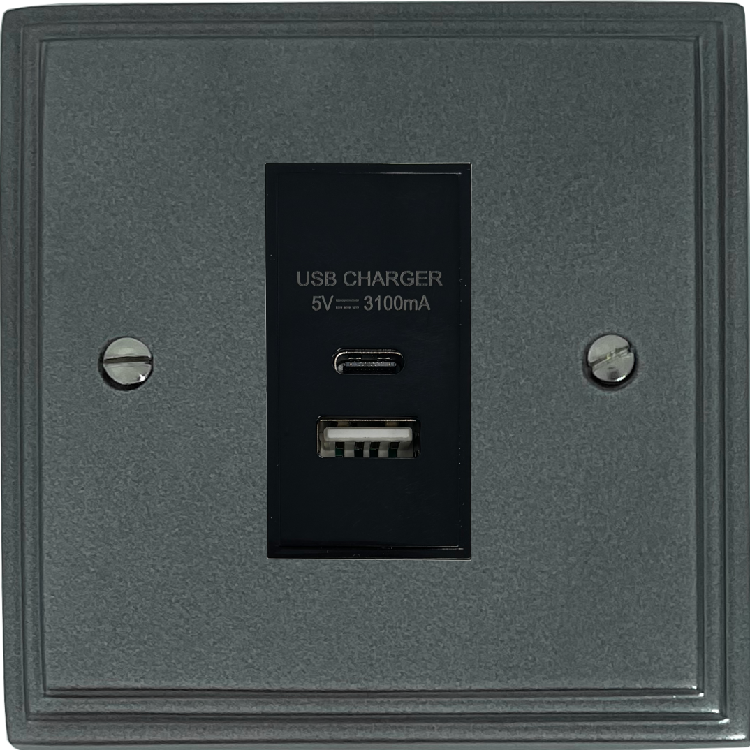 Pewter USB Charger (USB-A and USB-C) (1 Gang/Black Insert) - G+H VP41B