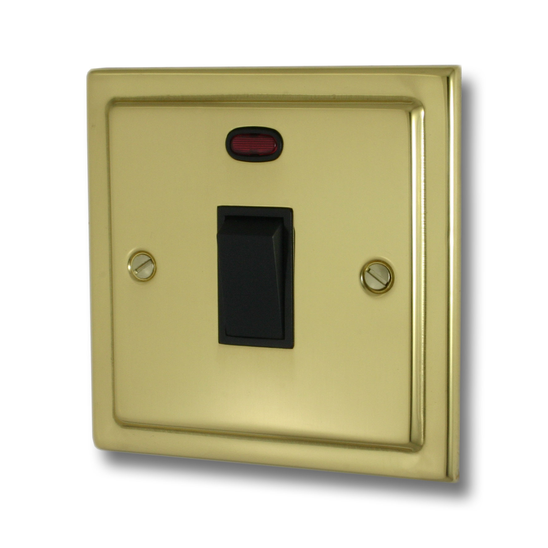 Polished Brass 20A DP Switch with Neon (Black Switch) - G+H TB26B