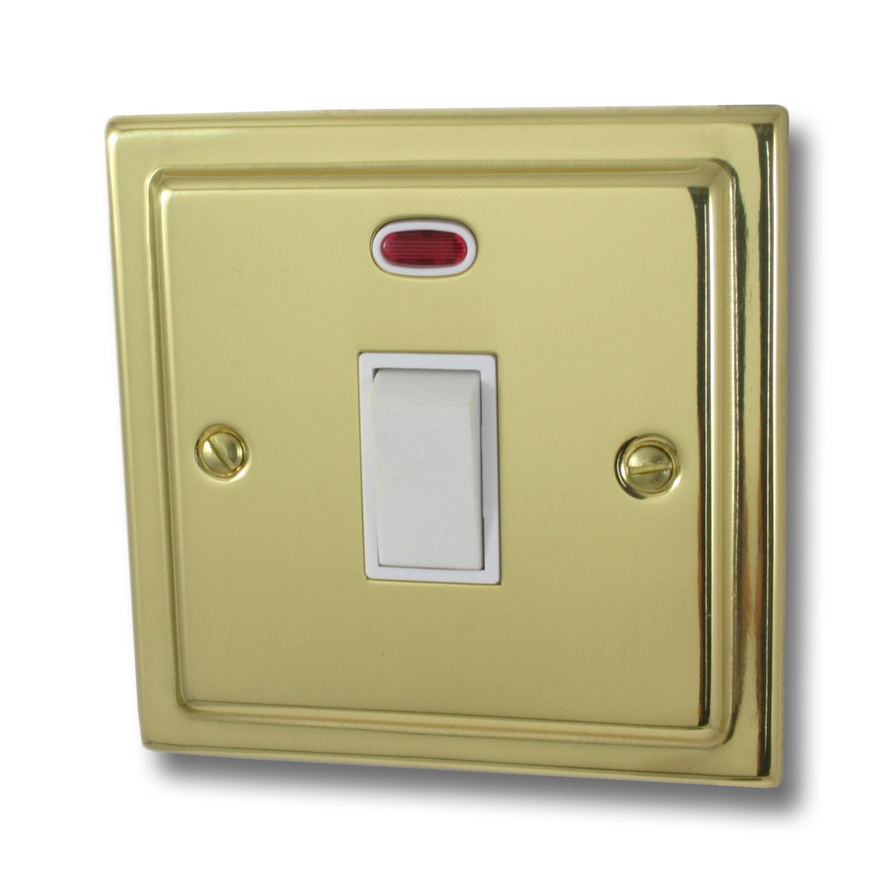 Polished Brass 20A DP Switch with Neon (White Switch) - G+H TB26W