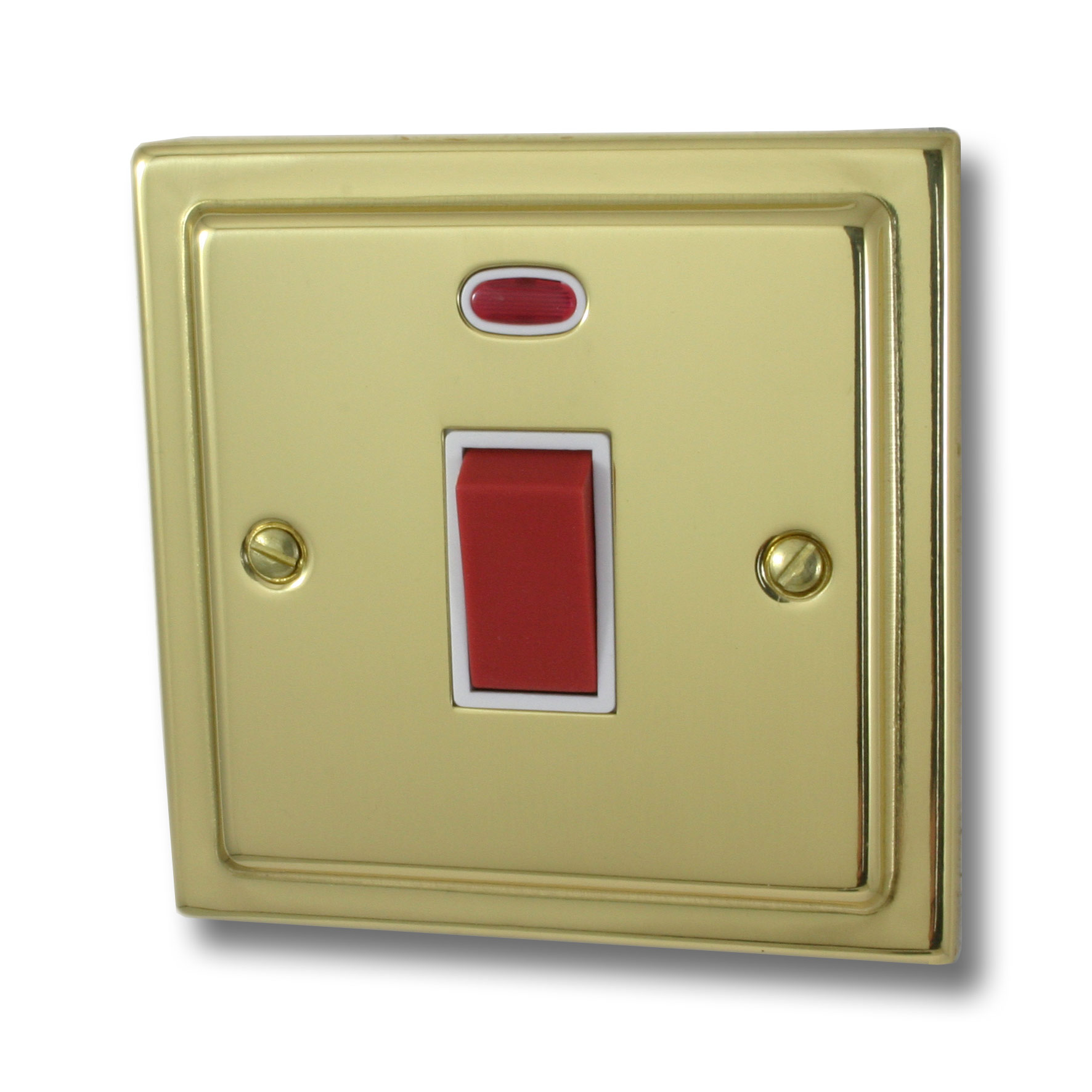 Polished Brass 45A DP Switch with Neon (White Insert) - G+H TB46W