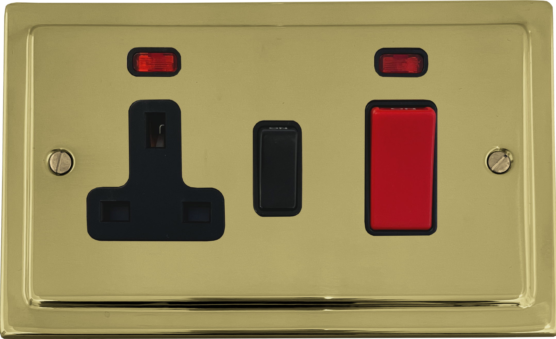 Polished Brass Cooker Switch with Socket (Black Switch) - G+H TB29B