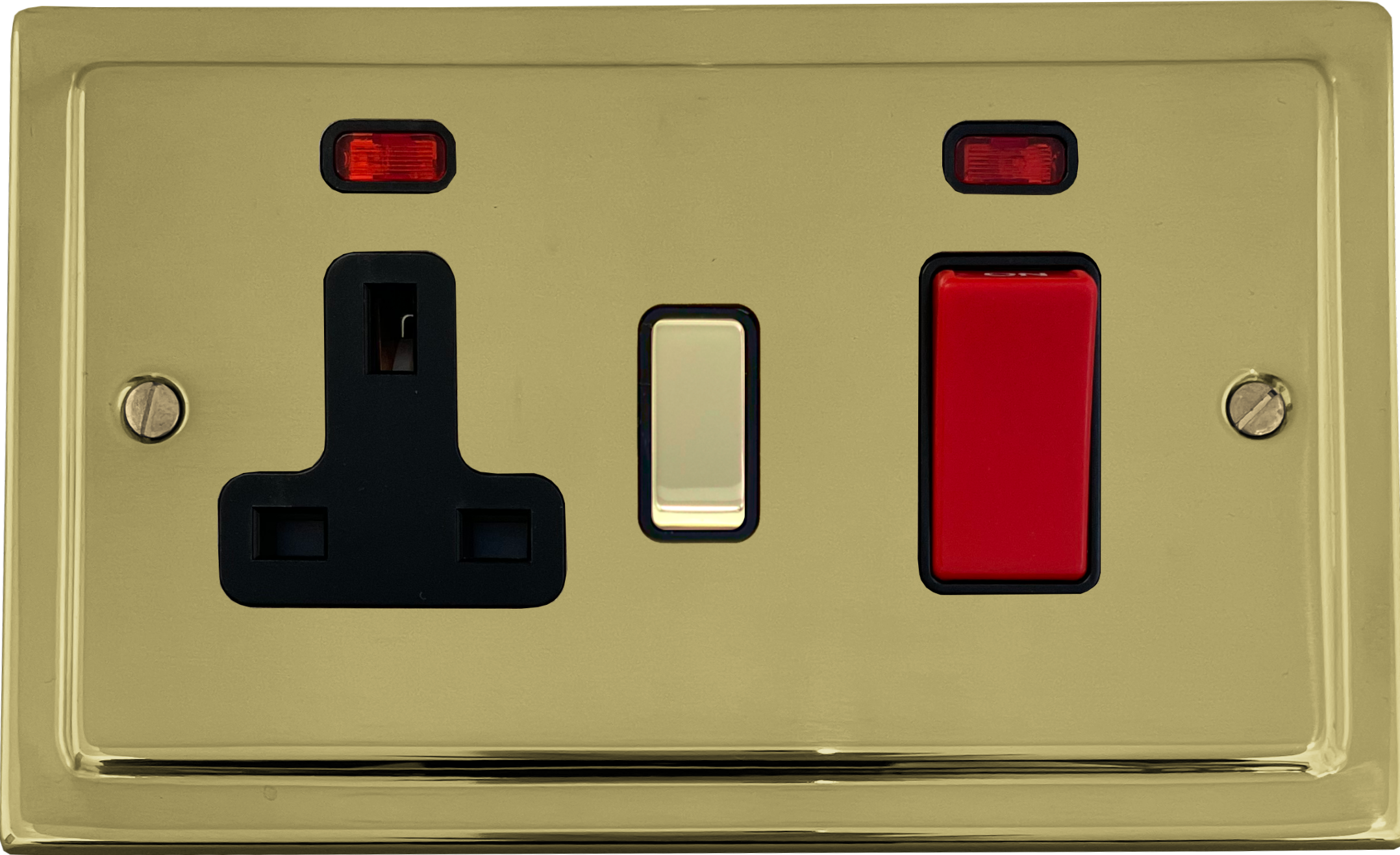 Polished Brass Cooker Switch with Socket (Brass Switch) - G+H TB329