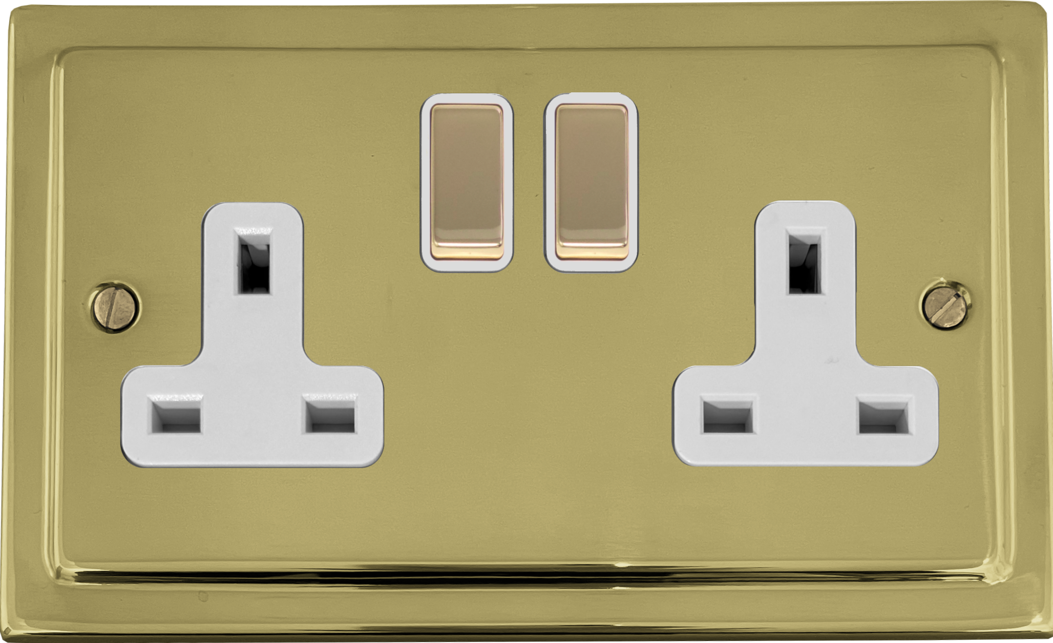 Polished Brass Double Socket (Brass Switches/White Inserts) - G+H TB210