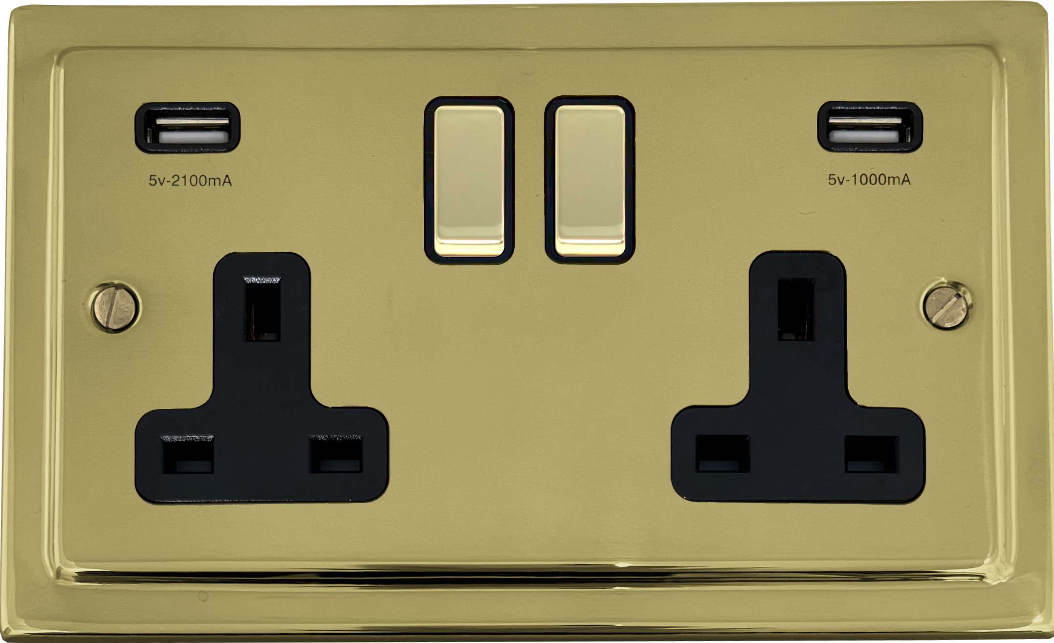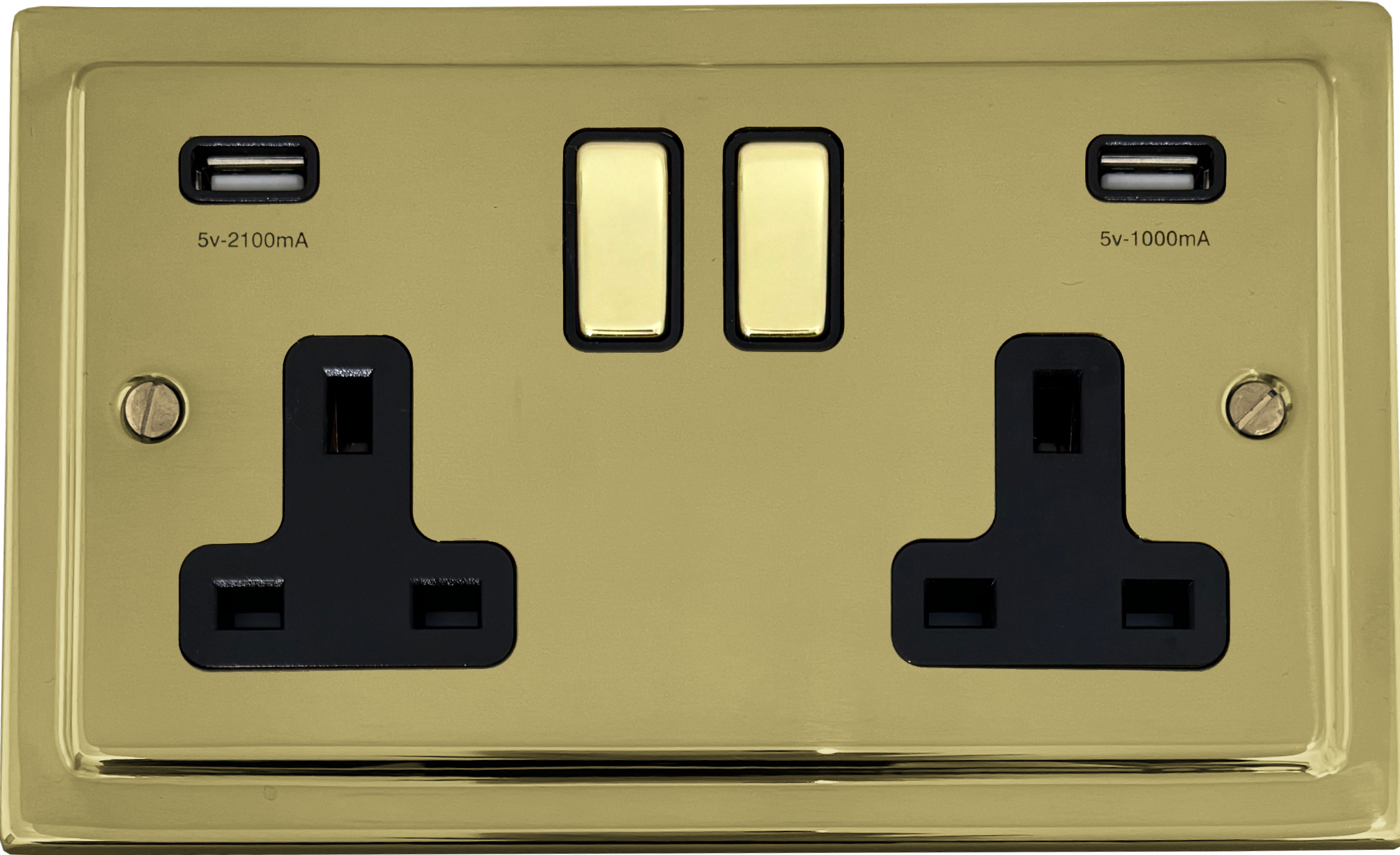 Polished Brass Double Socket with USB (Brass Switches) - G+H TB3910