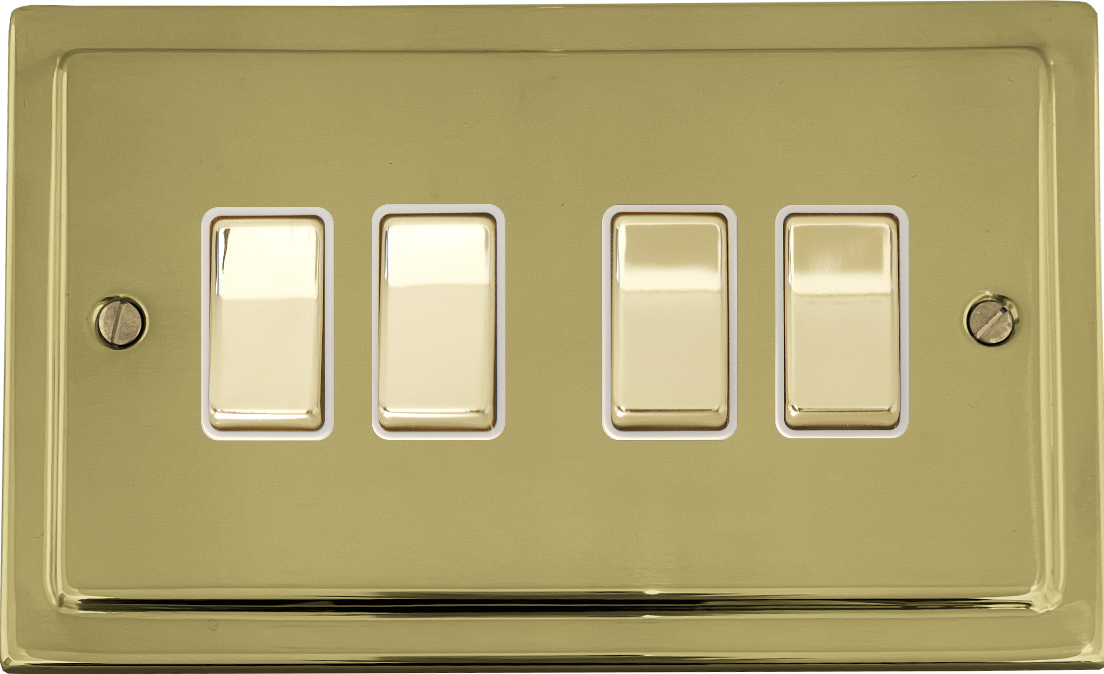 Polished Brass Light Switch (4 Gang/Brass Switches/White Inserts) - G+H TB204
