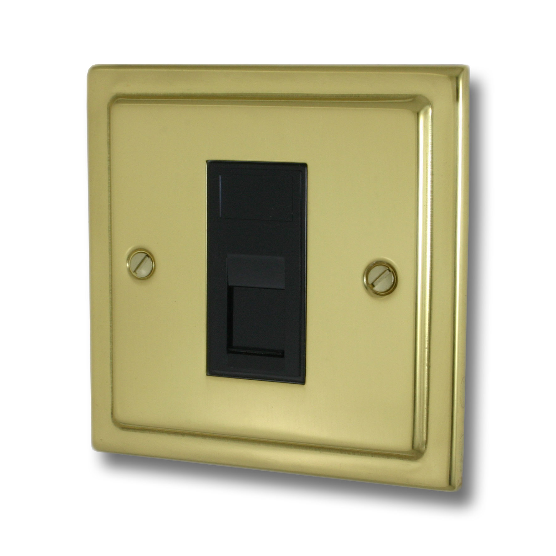 Polished Brass RJ45 Socket (1 Gang/Black Insert) - G+H TB61B