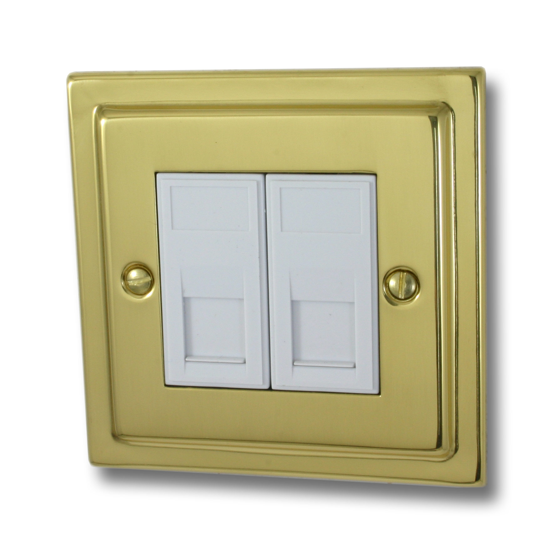 Polished Brass RJ45 Socket (2 Gang/White Insert) - G+H TB62W