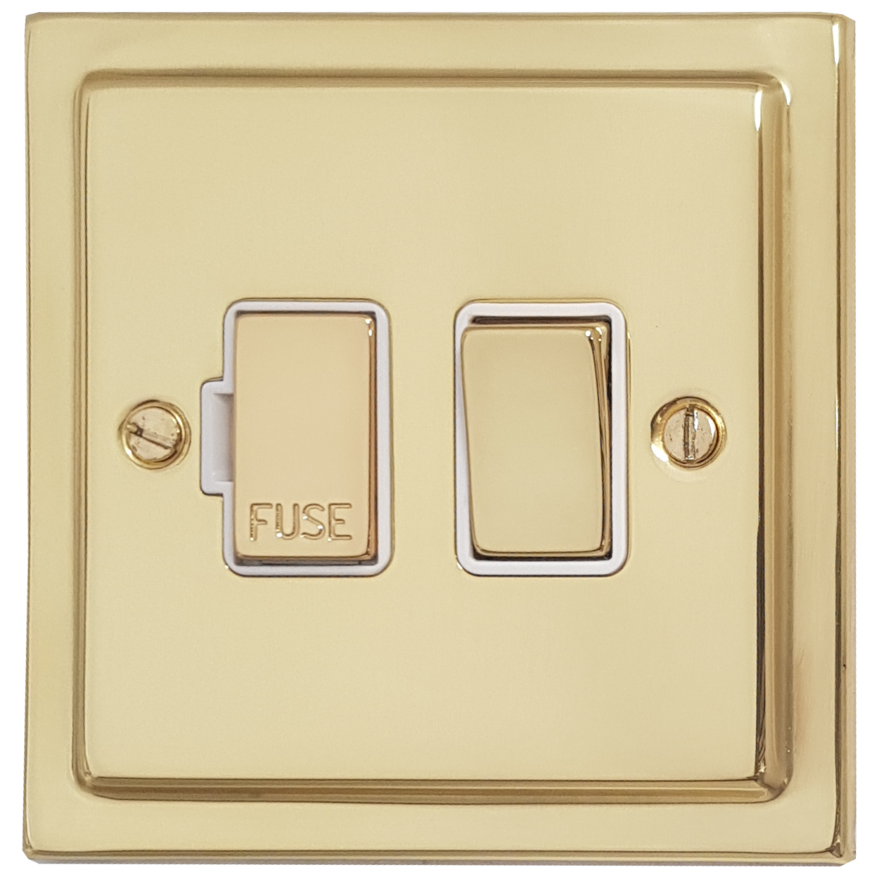 Polished Brass Switched Fused Spur (Brass Switch/White Inserts) - G+H TB257