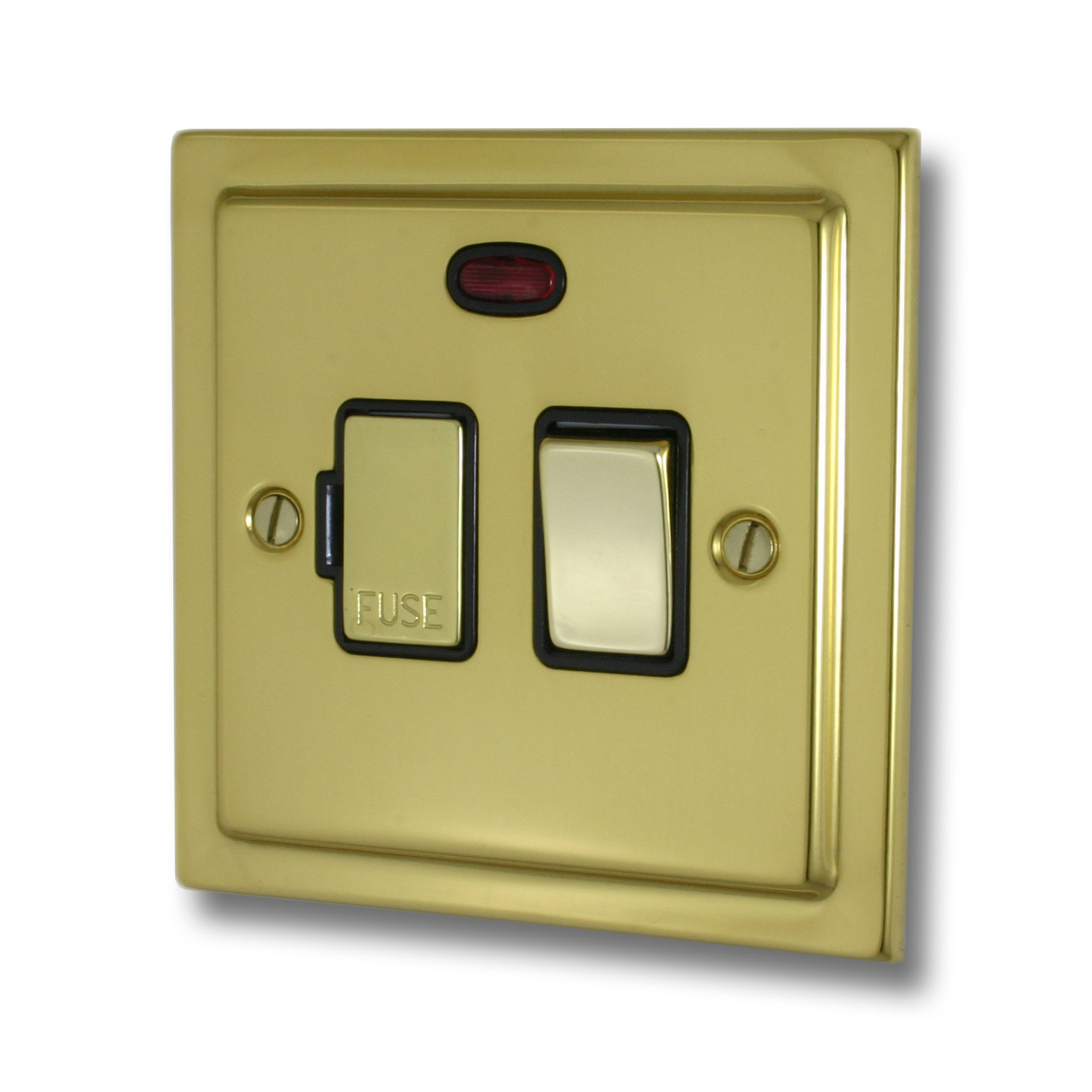 Polished Brass Switched Fused Spur with Neon (Brass Switch) - G+H TB327