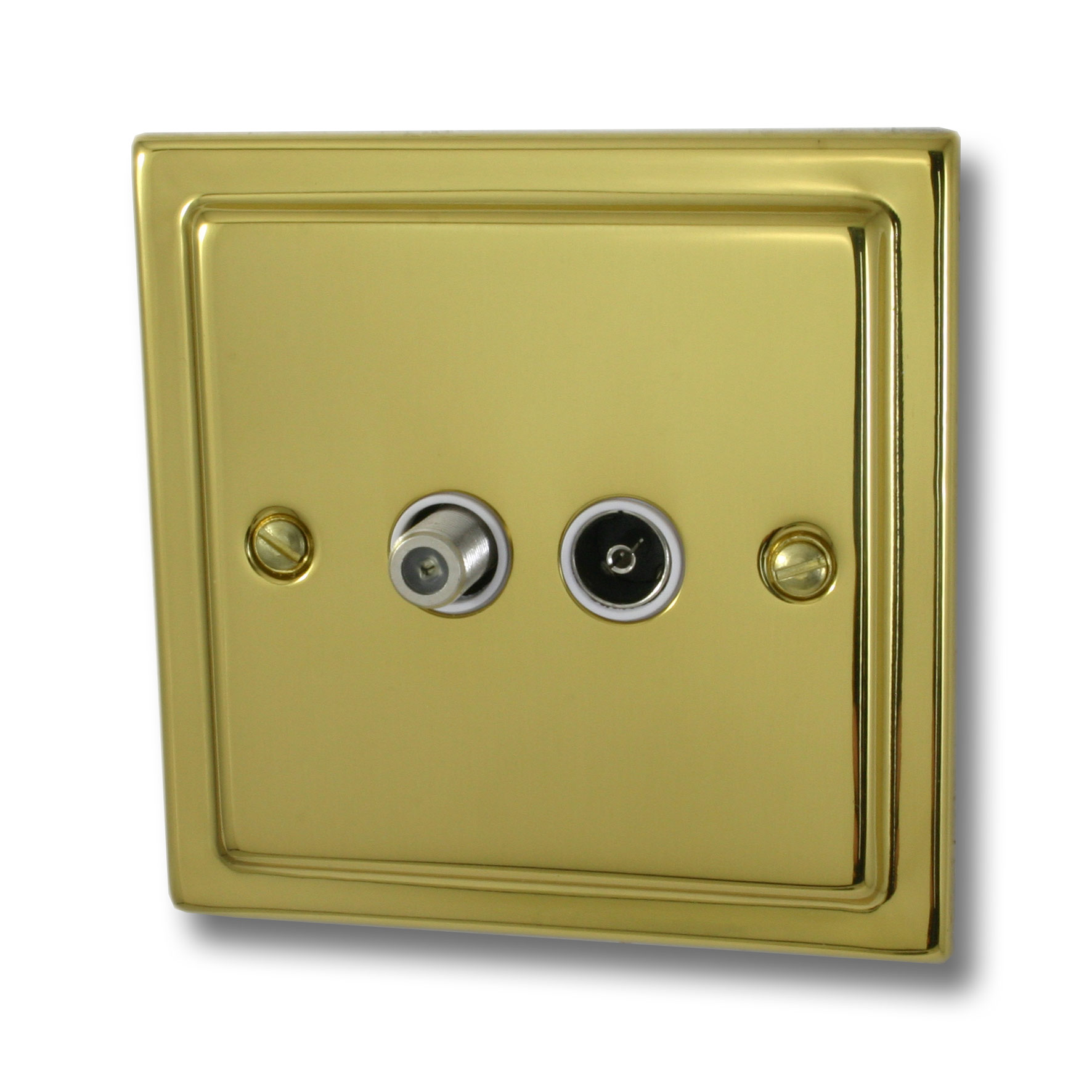 Polished Brass TV/Satellite Socket (White Insert) - G+H TB38W