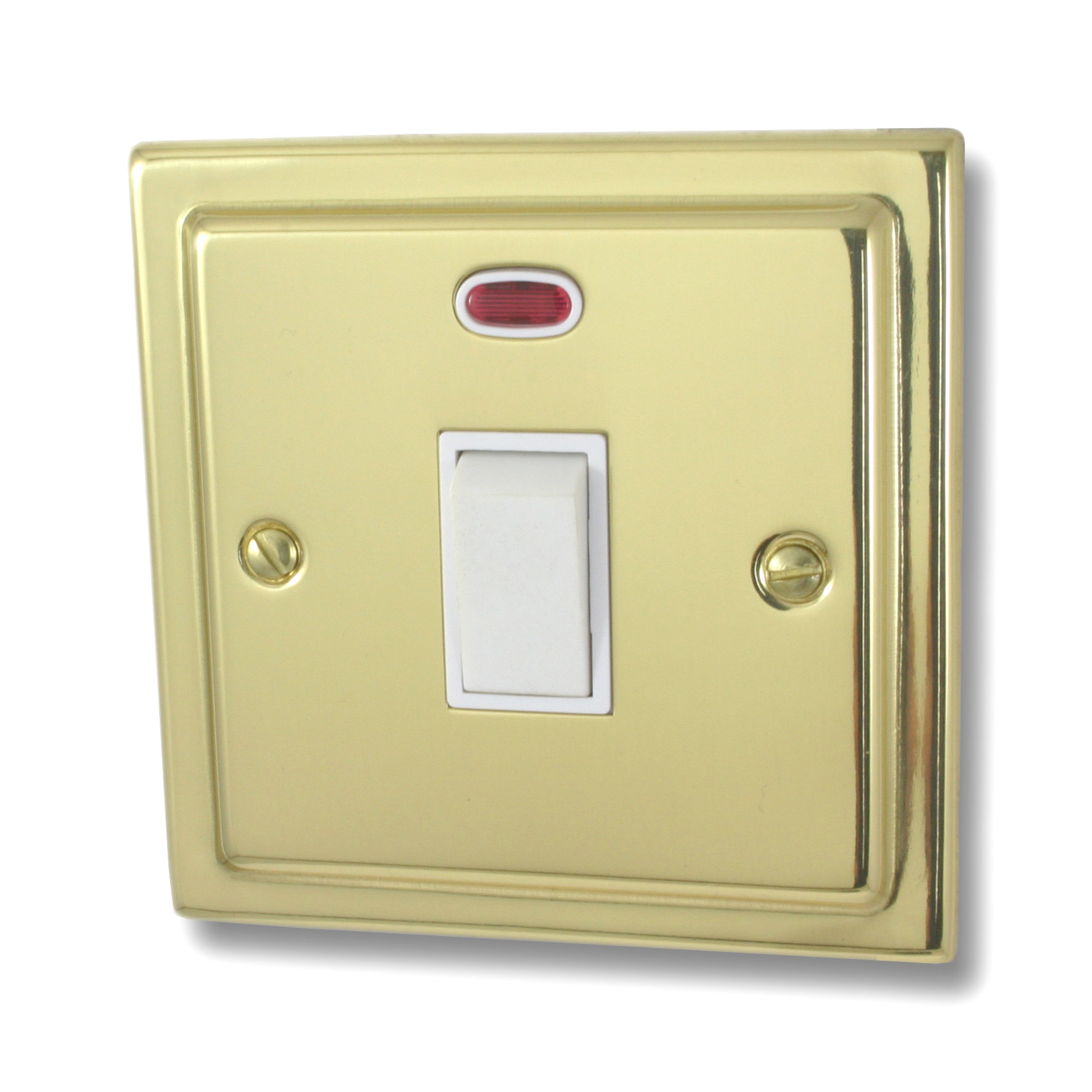 Polished Brass Unlaquered 20A DP Switch with Neon (White Switch) - G+H TBUL26W
