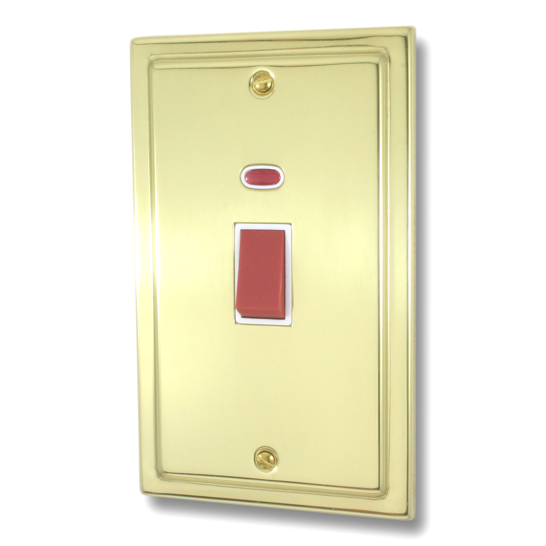 Polished Brass Unlaquered 45A DP Switch with Neon (White Insert/Vertical Plate)