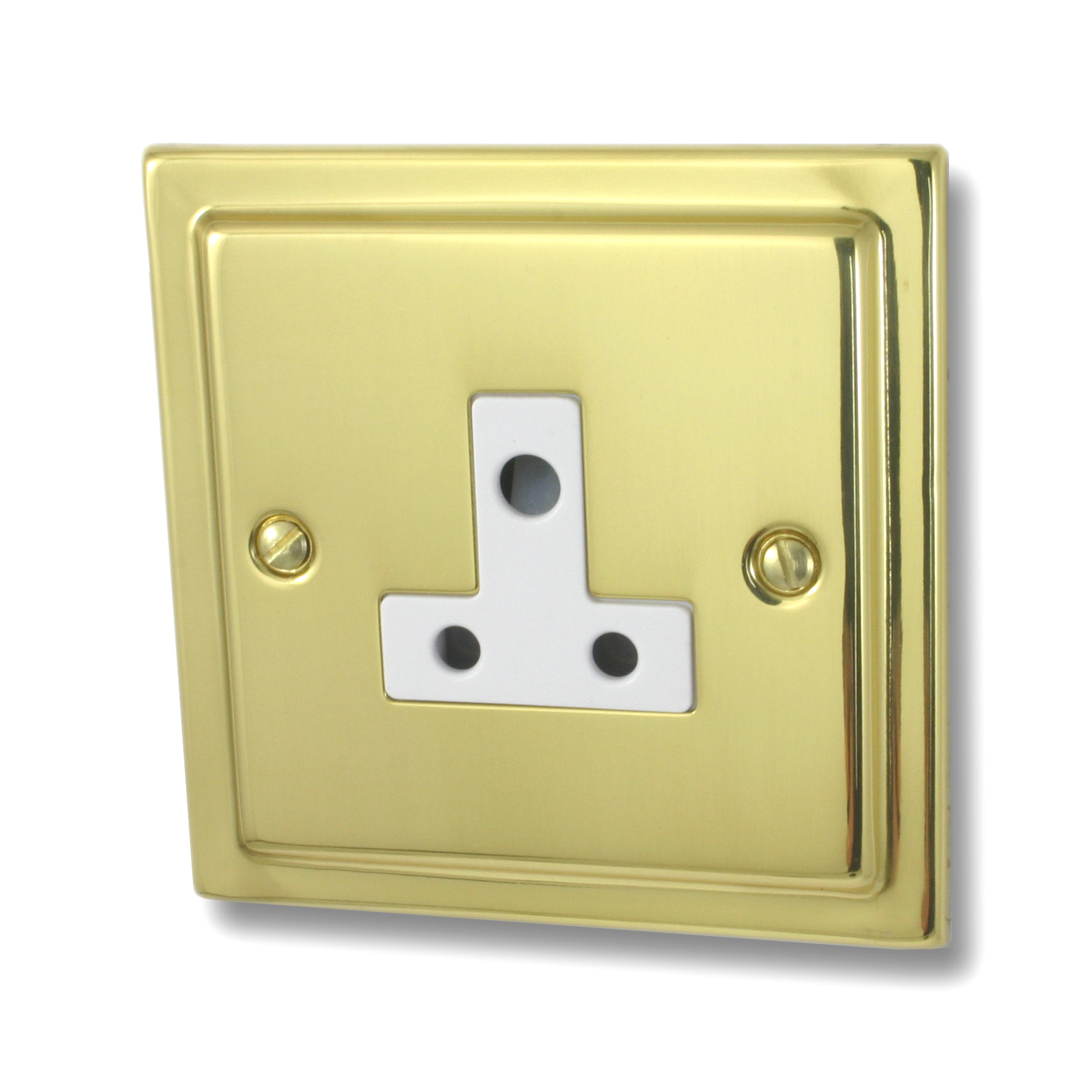 Polished Brass Unlaquered 5A 3 Pin Socket (White Insert) - G+H TBUL59W