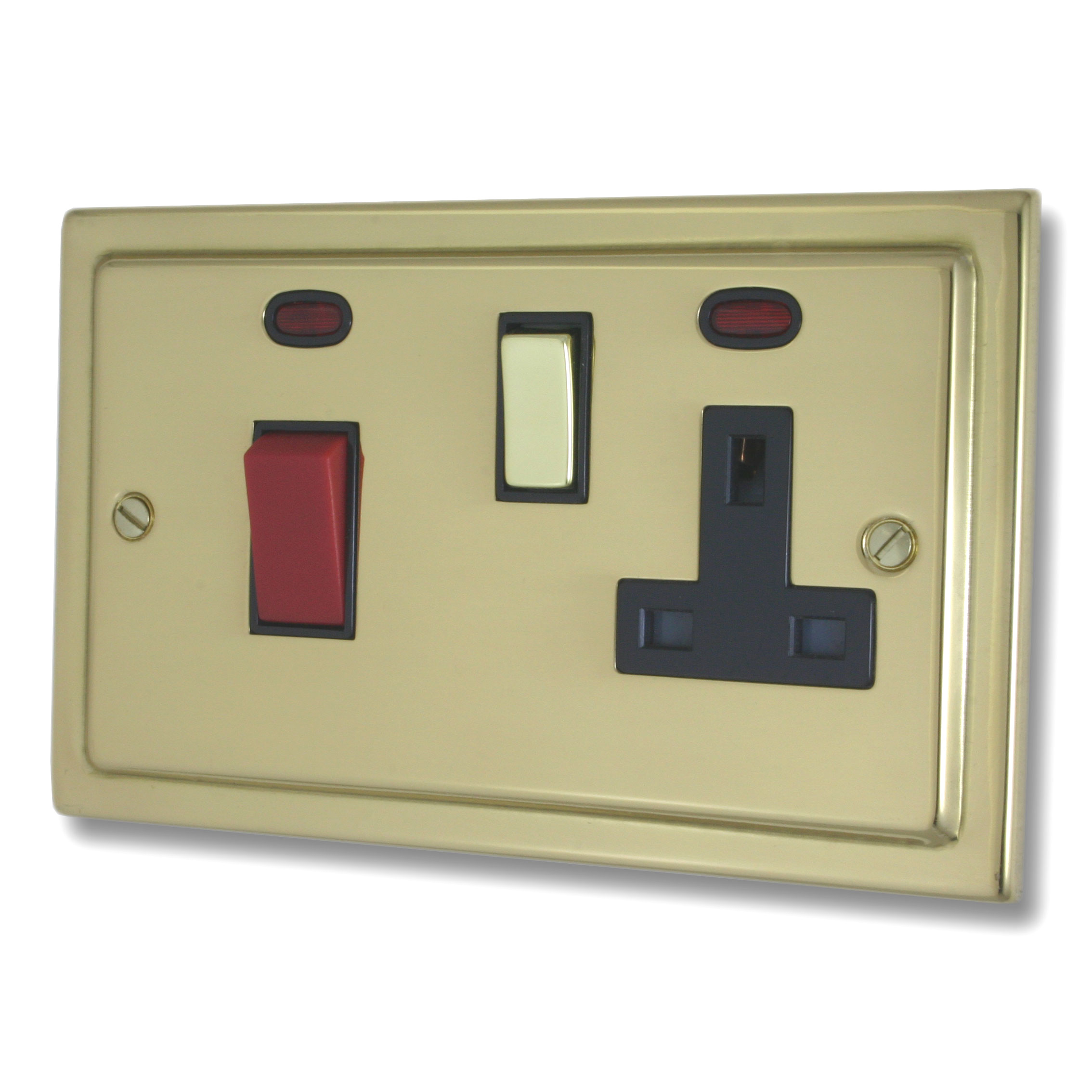 Polished Brass Unlaquered Cooker Switch with Socket (Brass Switch)