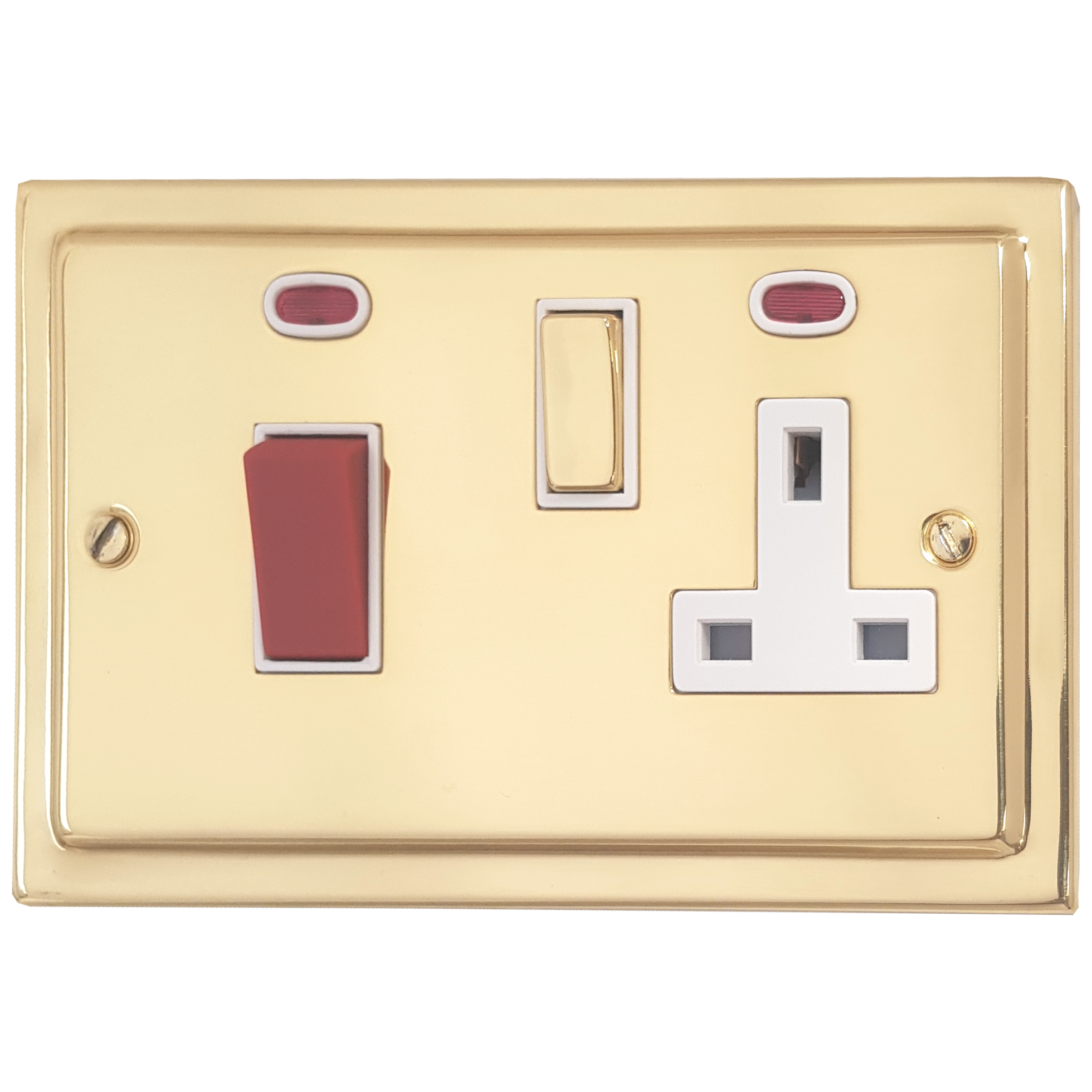 Polished Brass Unlaquered Cooker Switch with Socket (Brass Switch/White Inserts)