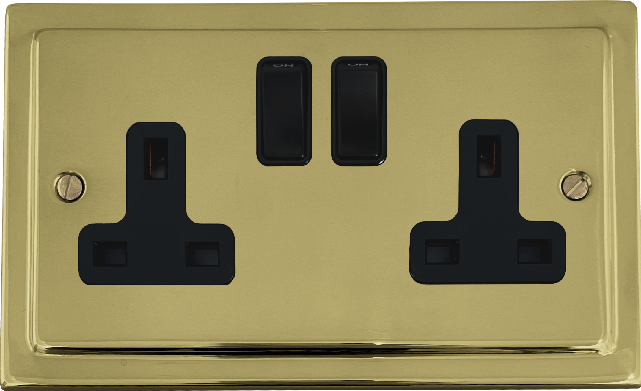 Polished Brass Unlaquered Double Socket (Black Switches) - G+H TBUL10B