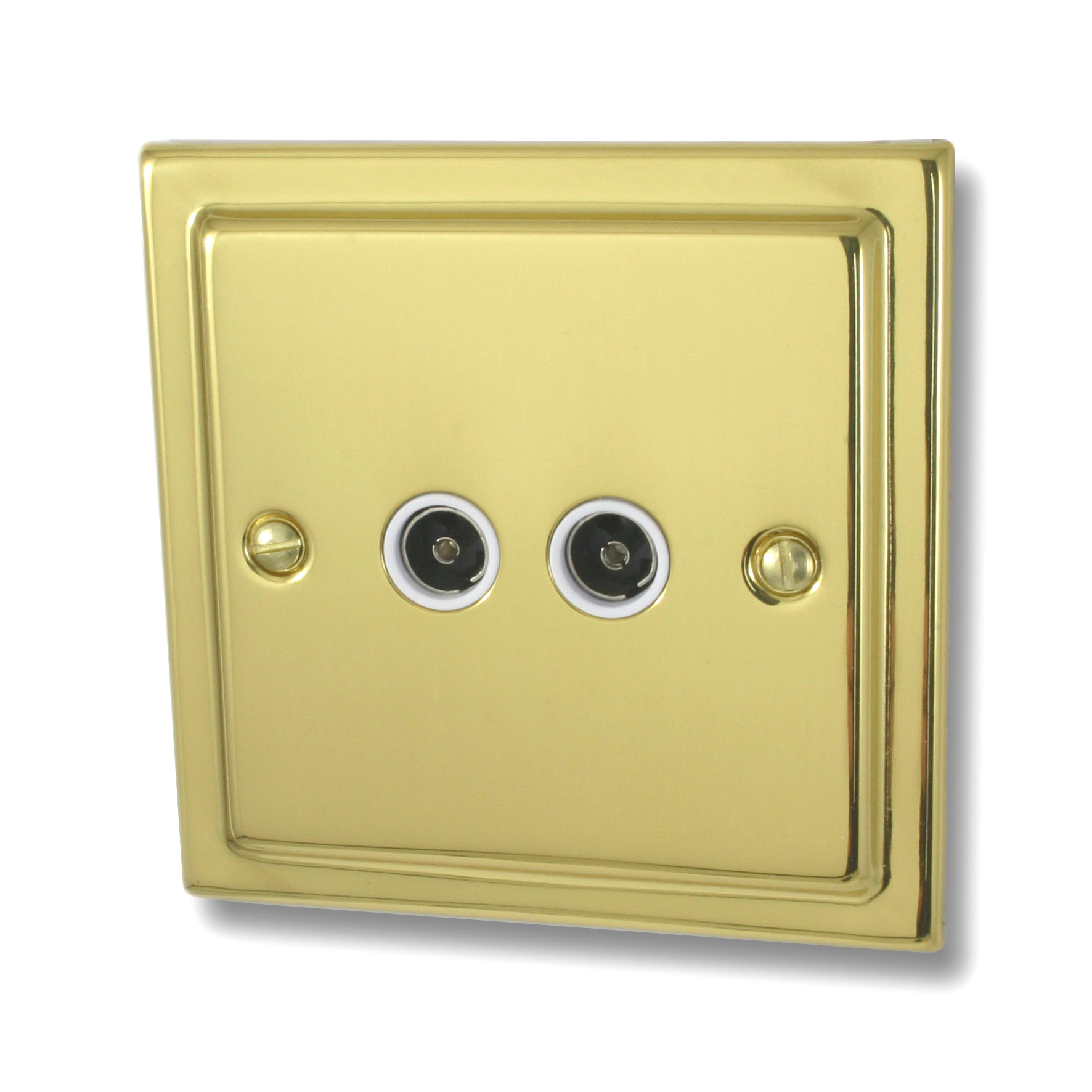 Polished Brass Unlaquered Double TV Point (White Insert) - G+H TBUL36W