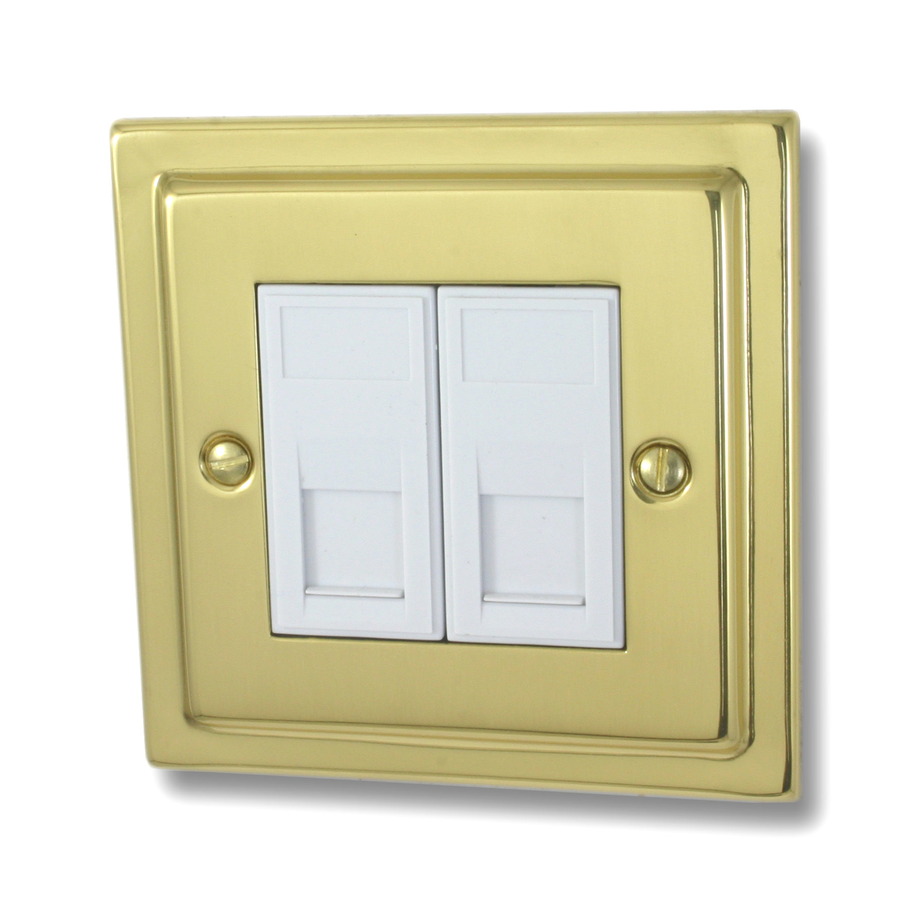 Polished Brass Unlaquered RJ45 Socket (2 Gang/White Insert) - G+H TBUL62W