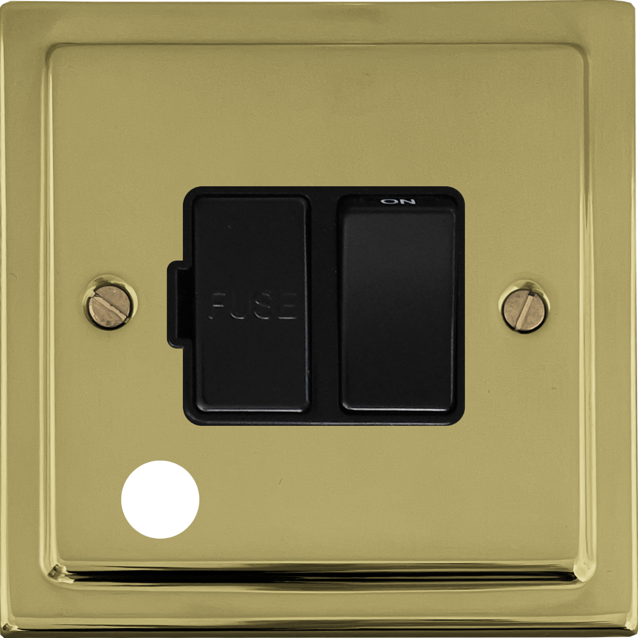 Polished Brass Unlaquered Switched Fused Spur with Flex Outlet (Black Switch) - G+H TBUL56B