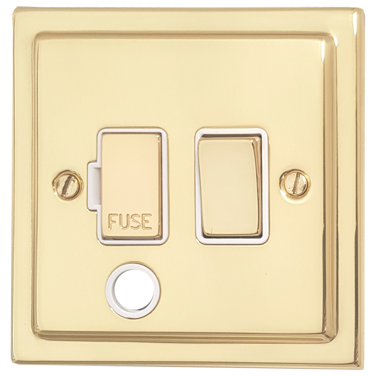Polished Brass Unlaquered Switched Fused Spur with Flex Outlet (Brass Switch/White Inserts) - G+H TBUL256