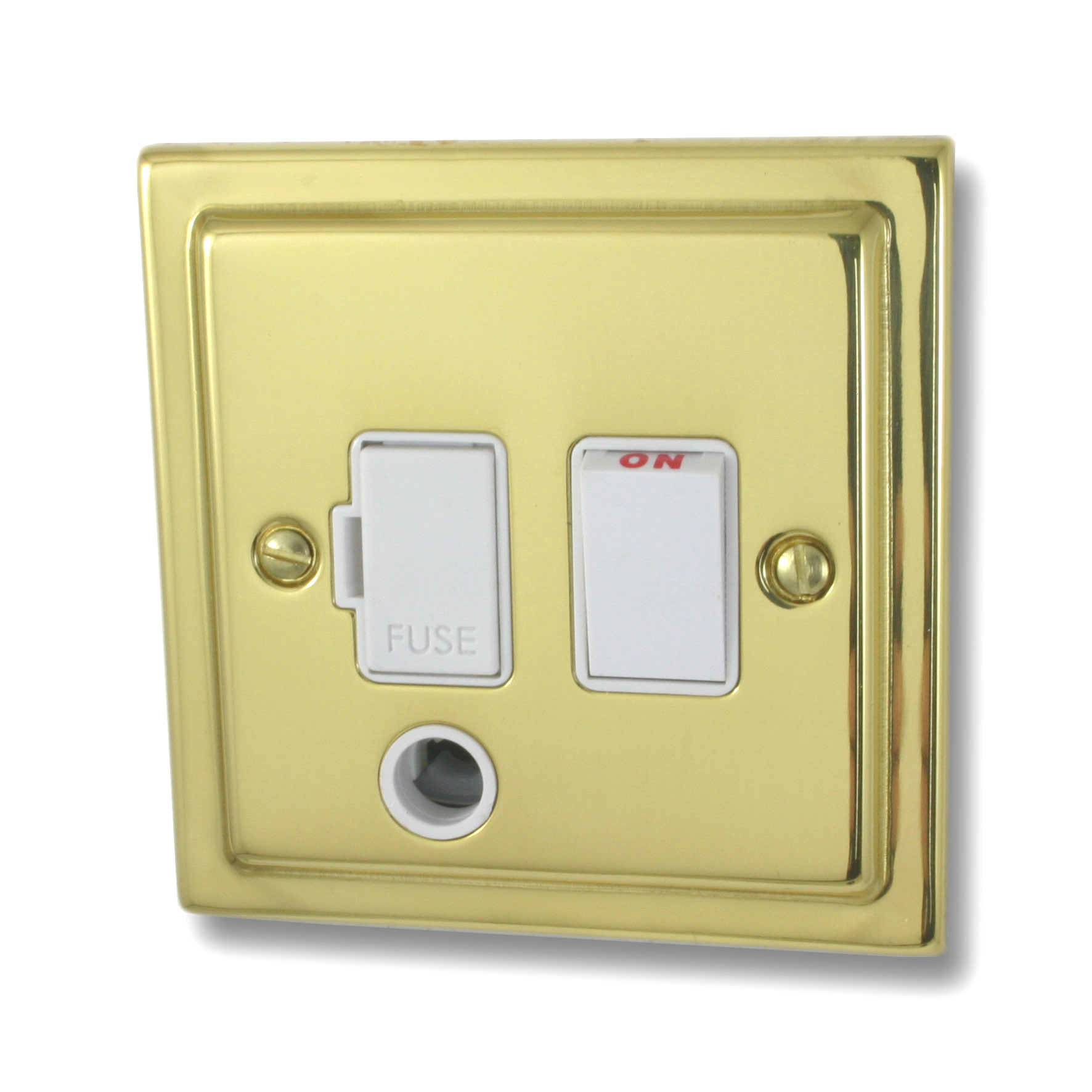 Polished Brass Unlaquered Switched Fused Spur with Flex Outlet (White Switch)