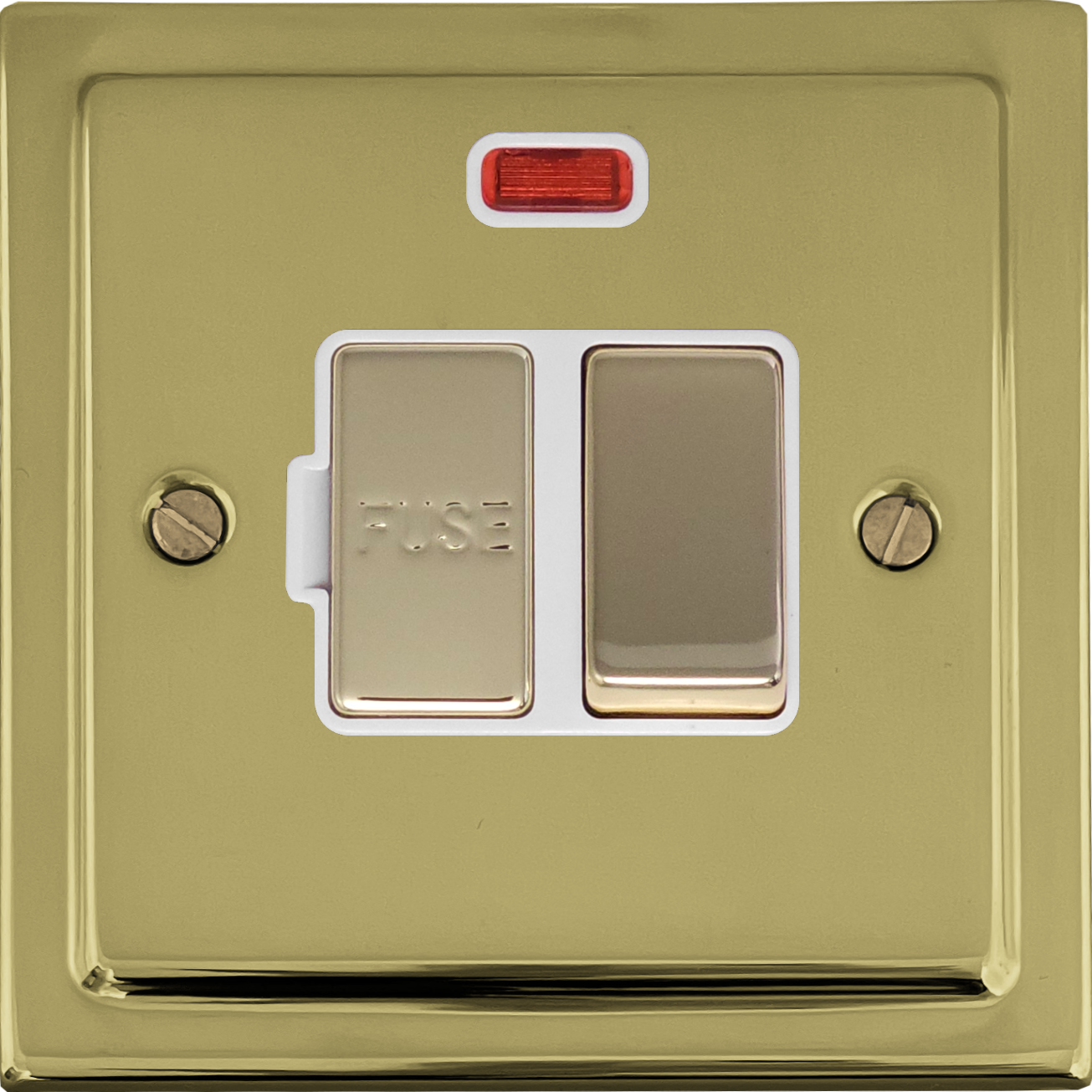 Polished Brass Unlaquered Switched Fused Spur with Neon (Brass Switch/White Inserts) - G+H TBUL227