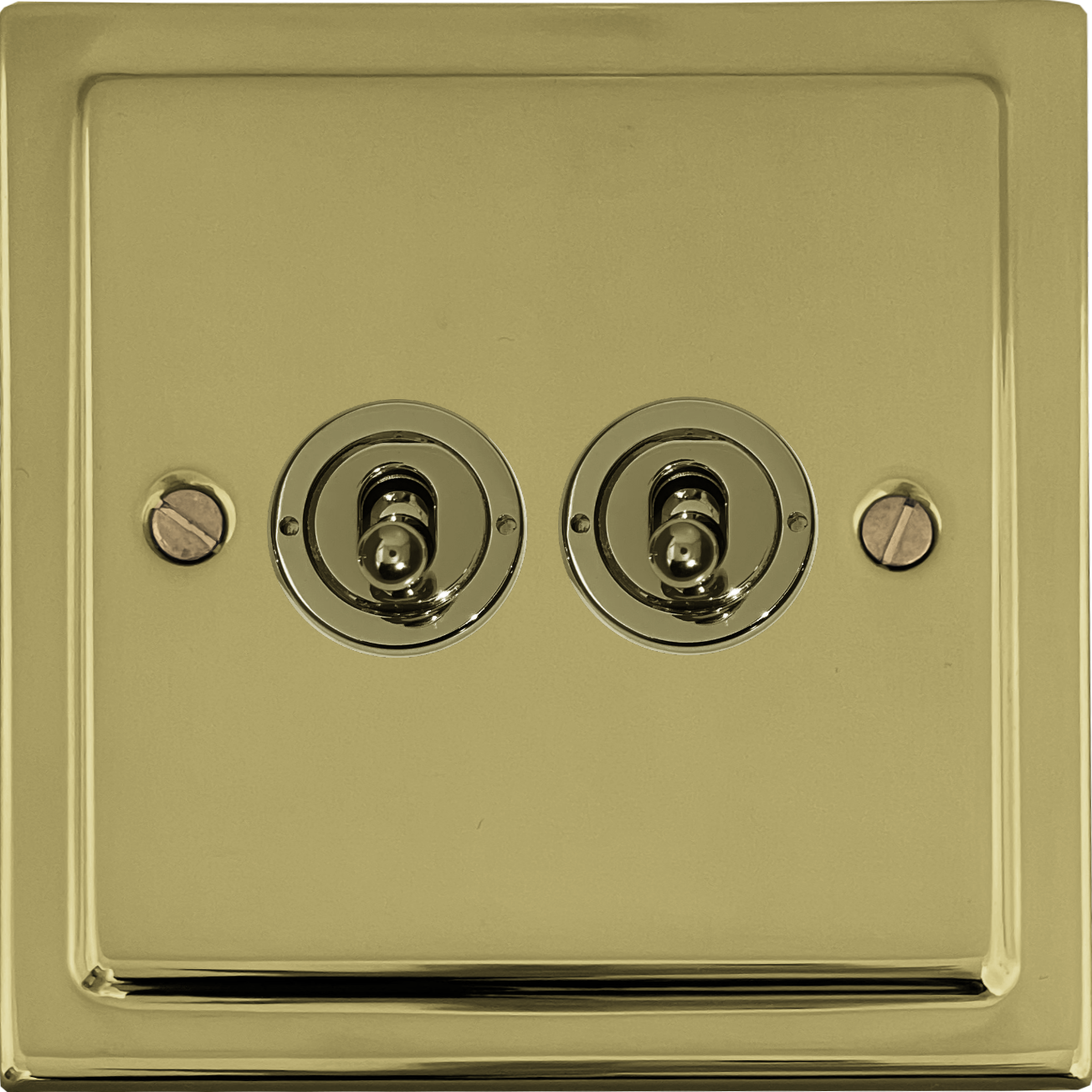 Polished Brass Unlaquered Toggle Switch (2 Gang) - G+H TBUL382