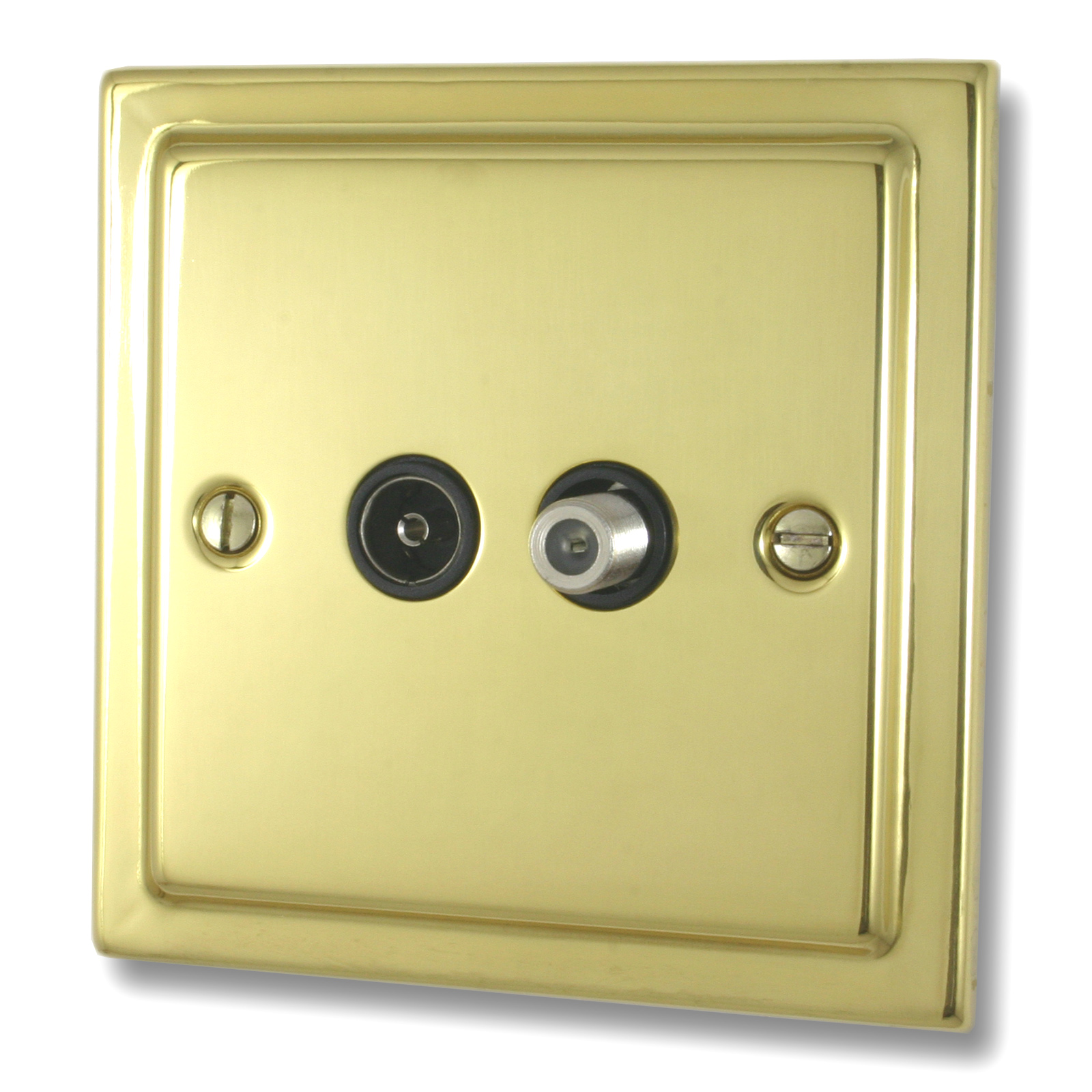 Polished Brass Unlaquered TV/Satellite Socket (Black Insert) - G+H TBUL38B