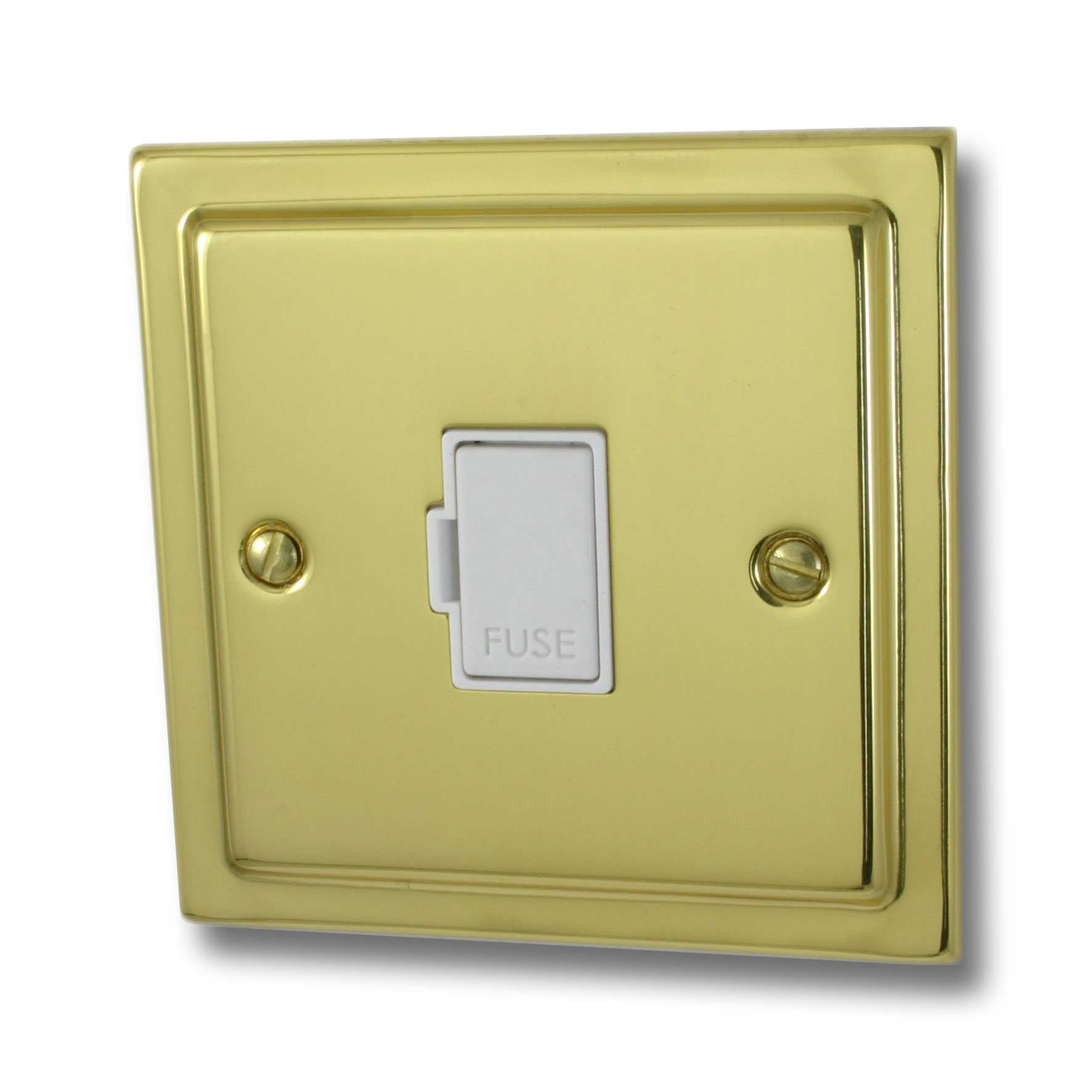 Polished Brass Unswitched Fused Spur (White Insert) - G+H TB90W