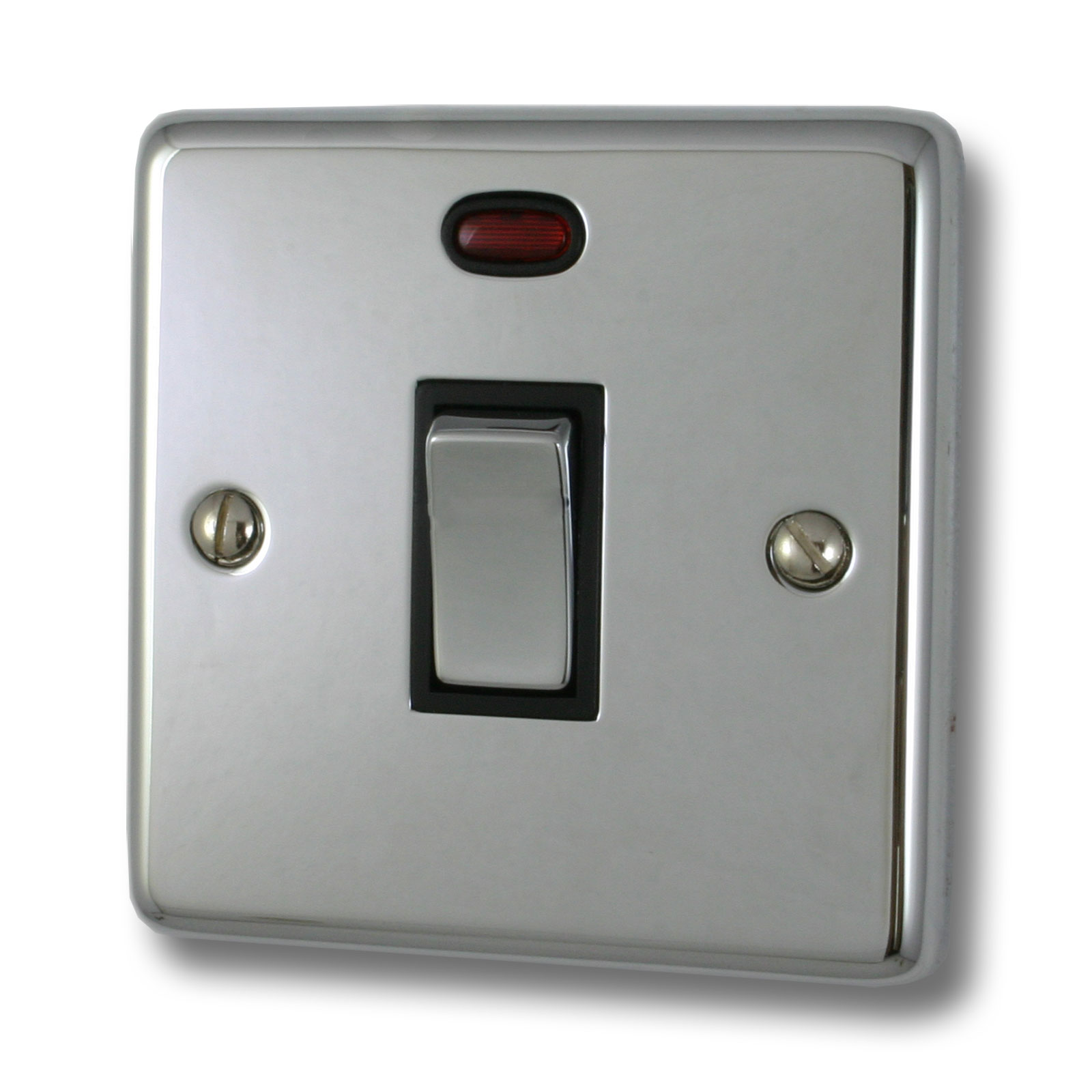 Polished Chrome 20A DP Switch with Neon (Black Insert/Chrome Switch) - G+H CC326