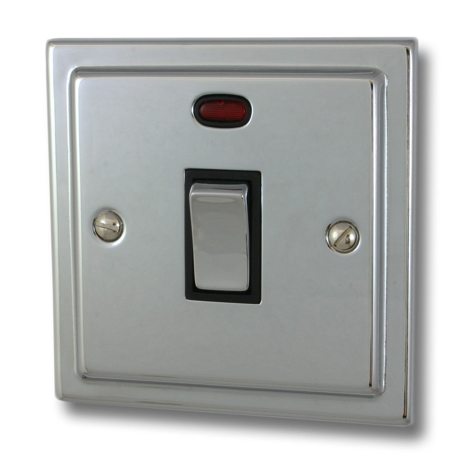 Polished Chrome 20A DP Switch with Neon (Black Insert/Polished Chrome Switch) - G+H TC326