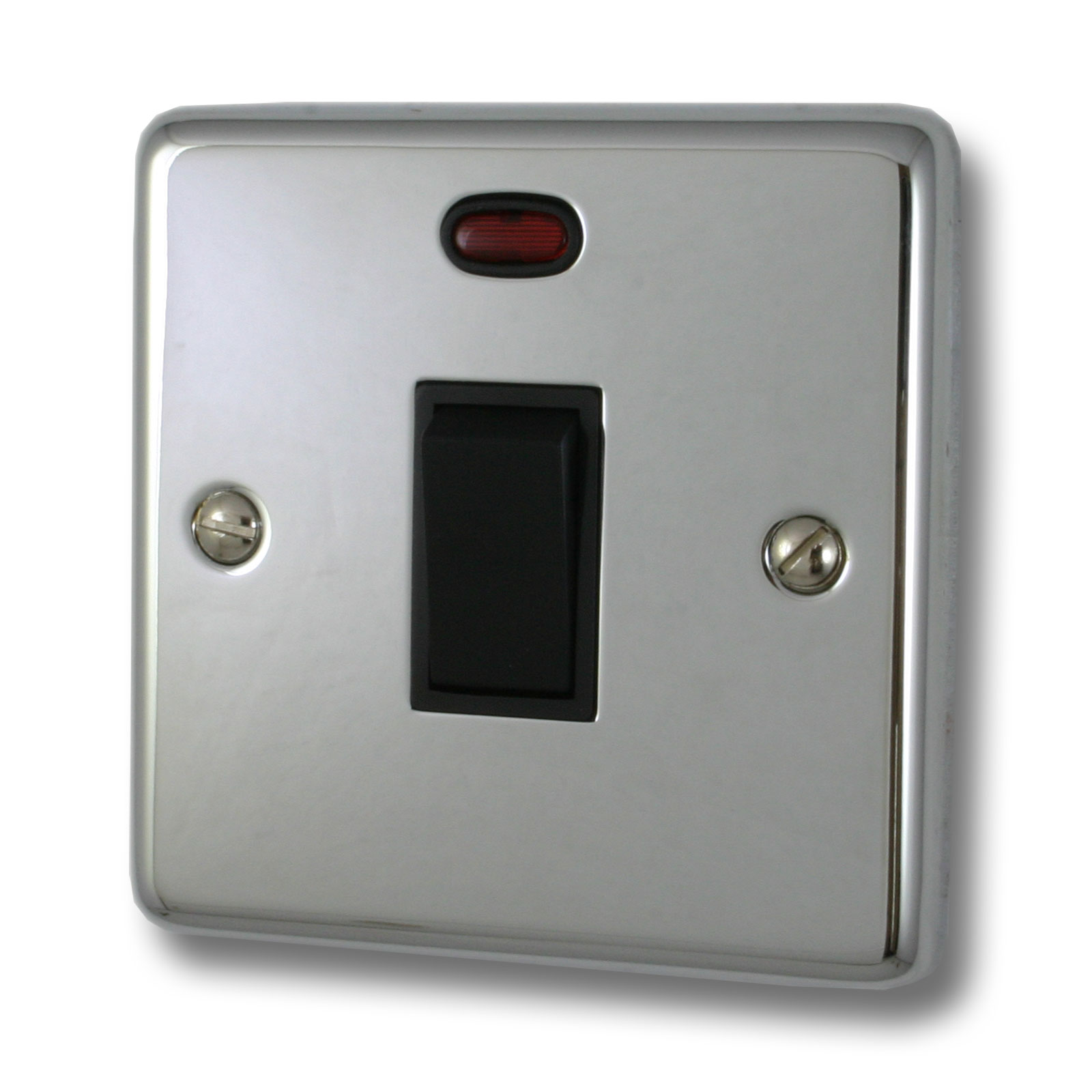 Polished Chrome 20A DP Switch with Neon (Black Switch) - G+H CC26B