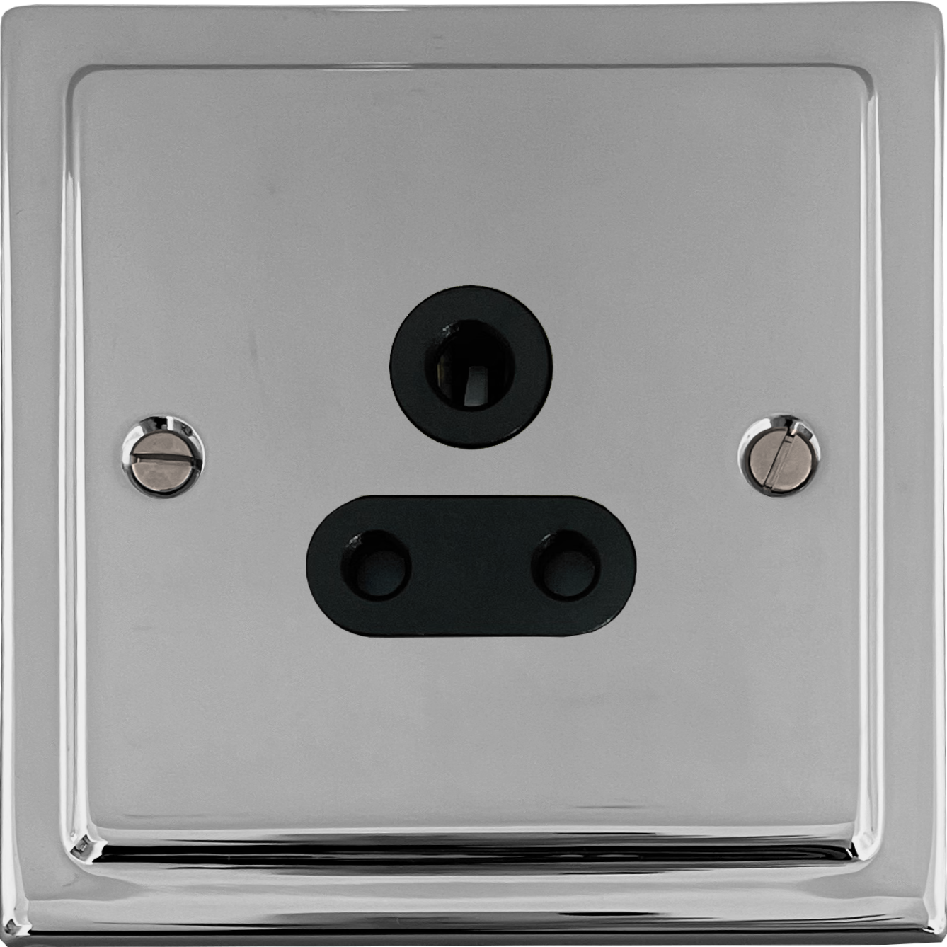 Polished Chrome 5A 3 Pin Socket (Black Insert) - G+H TC59B