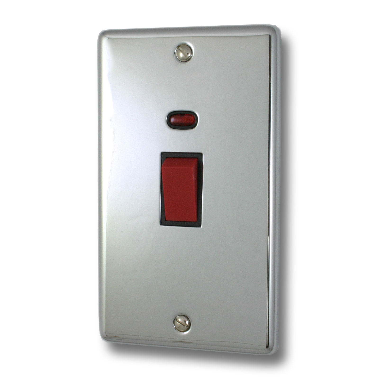 Polished Chrome Cooker Switch with Neon (Black Insert/Vertical Plate) - G+H CC28B