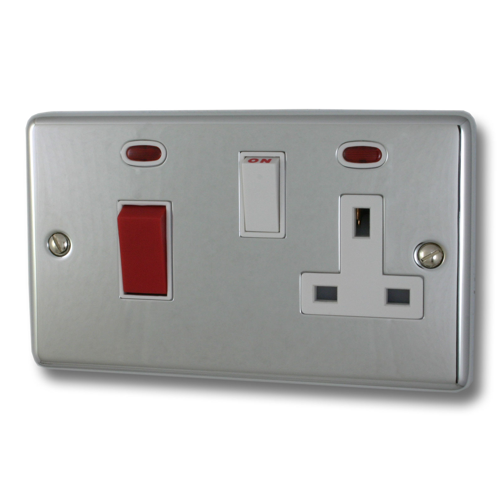 Polished Chrome Cooker Switch with Socket (White Switch) - G+H CC29W