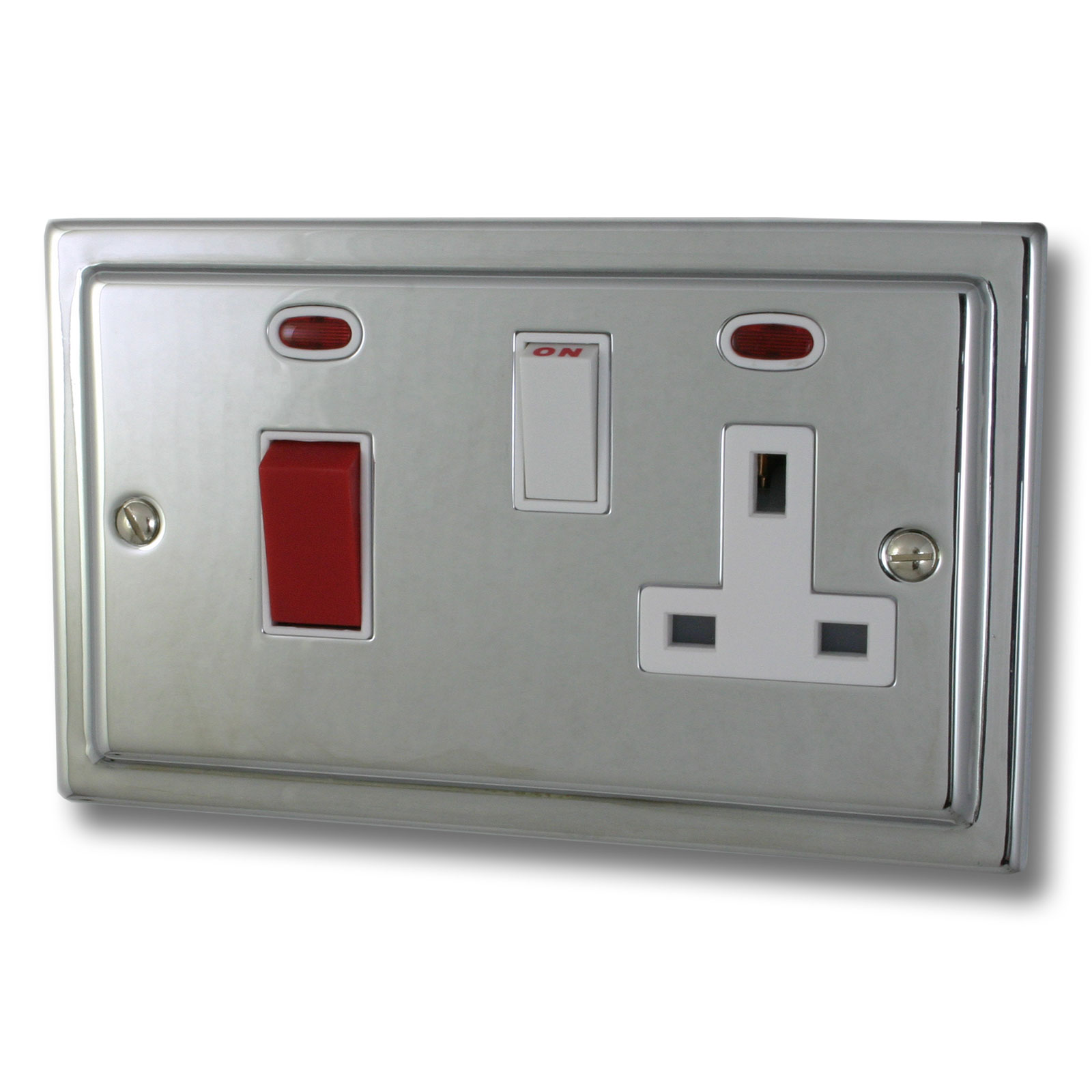 Polished Chrome Cooker Switch with Socket (White Switch) - G+H TC29W