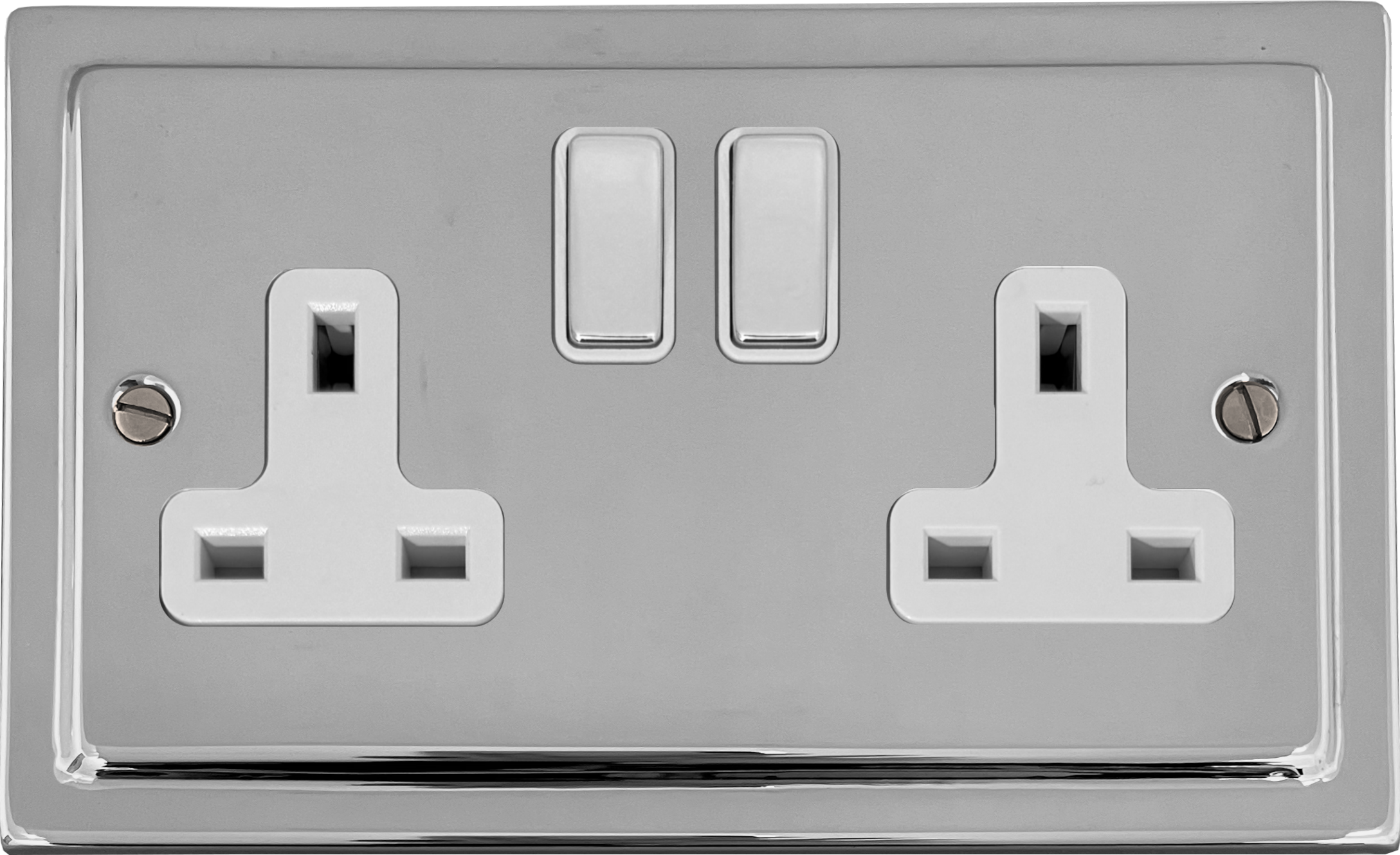 Polished Chrome Double Socket (White Insert/Polished Chrome Switches) - G+H TC210