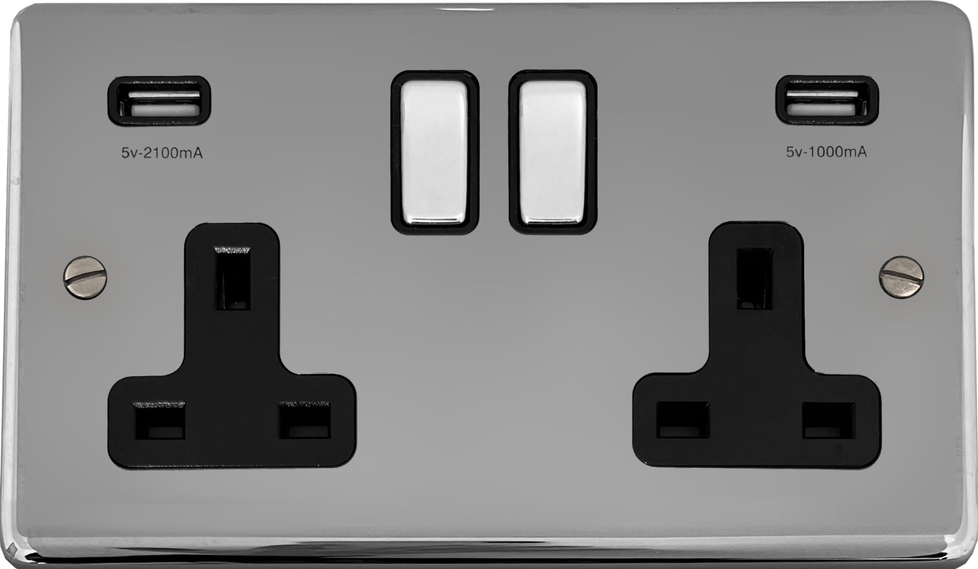 Polished Chrome Double Socket with USB (Black Inserts/Chrome Switches) - G+H CC3910