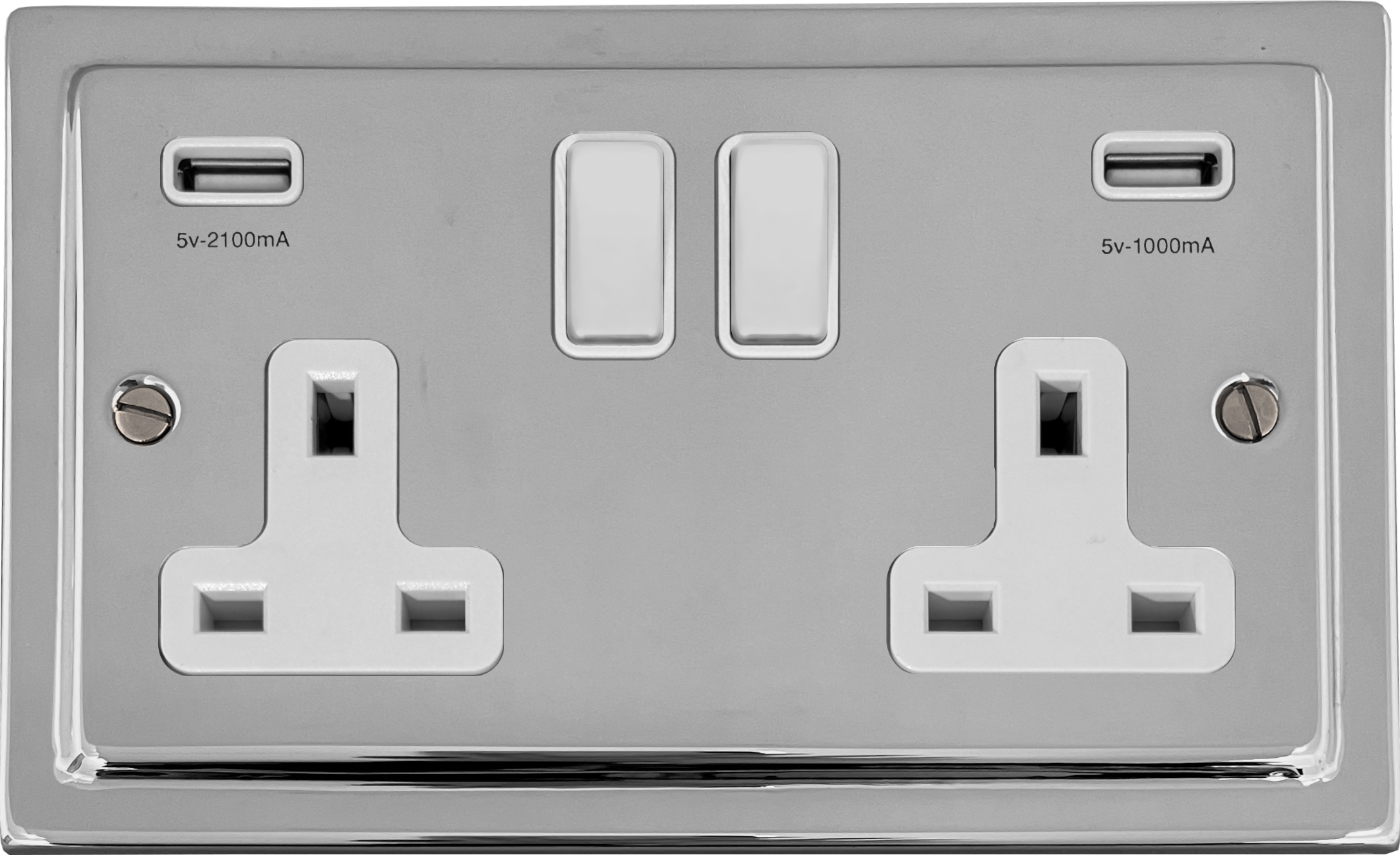Polished Chrome Double Socket with USB (White Switch) - G+H TC910W