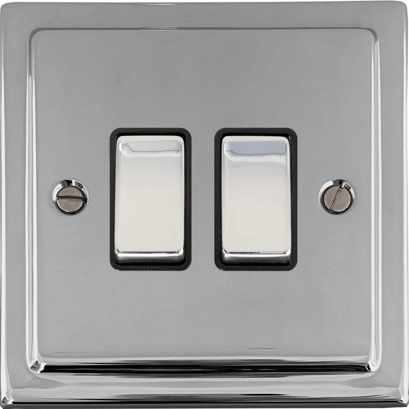Polished Chrome Light Switch (2 Gang/Black Insert/Polished Chrome Switches) - G+H TC302