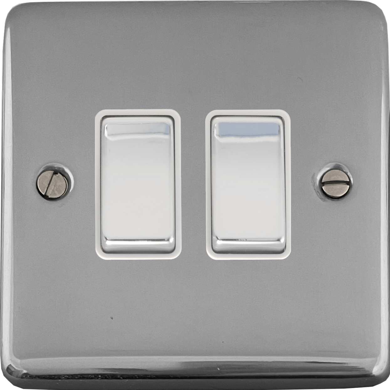 Polished Chrome Light Switch (2 Gang/White Insert/Chrome Switch) - G+H CC202